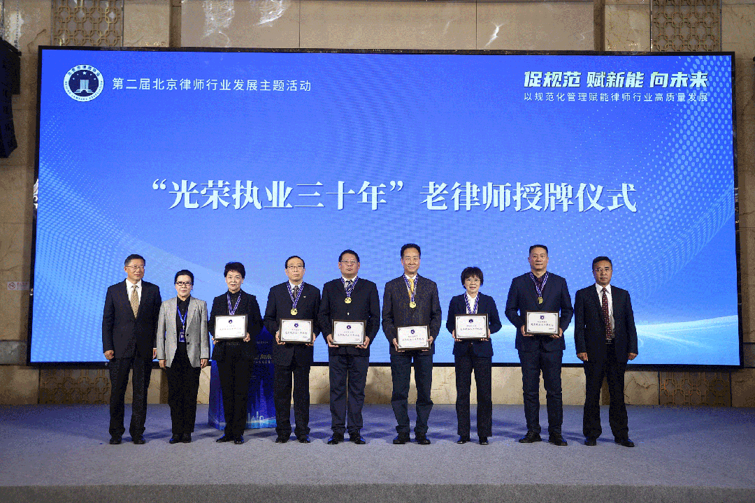 图为“光荣执业三十年“老律师授牌仪式