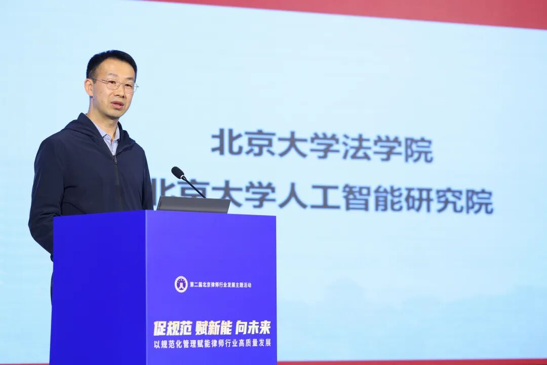 图为北京大学法学院党委副书记、人工智能研究院副院长,北京大学法律人工智能实验室主任杨晓雷作主旨演讲