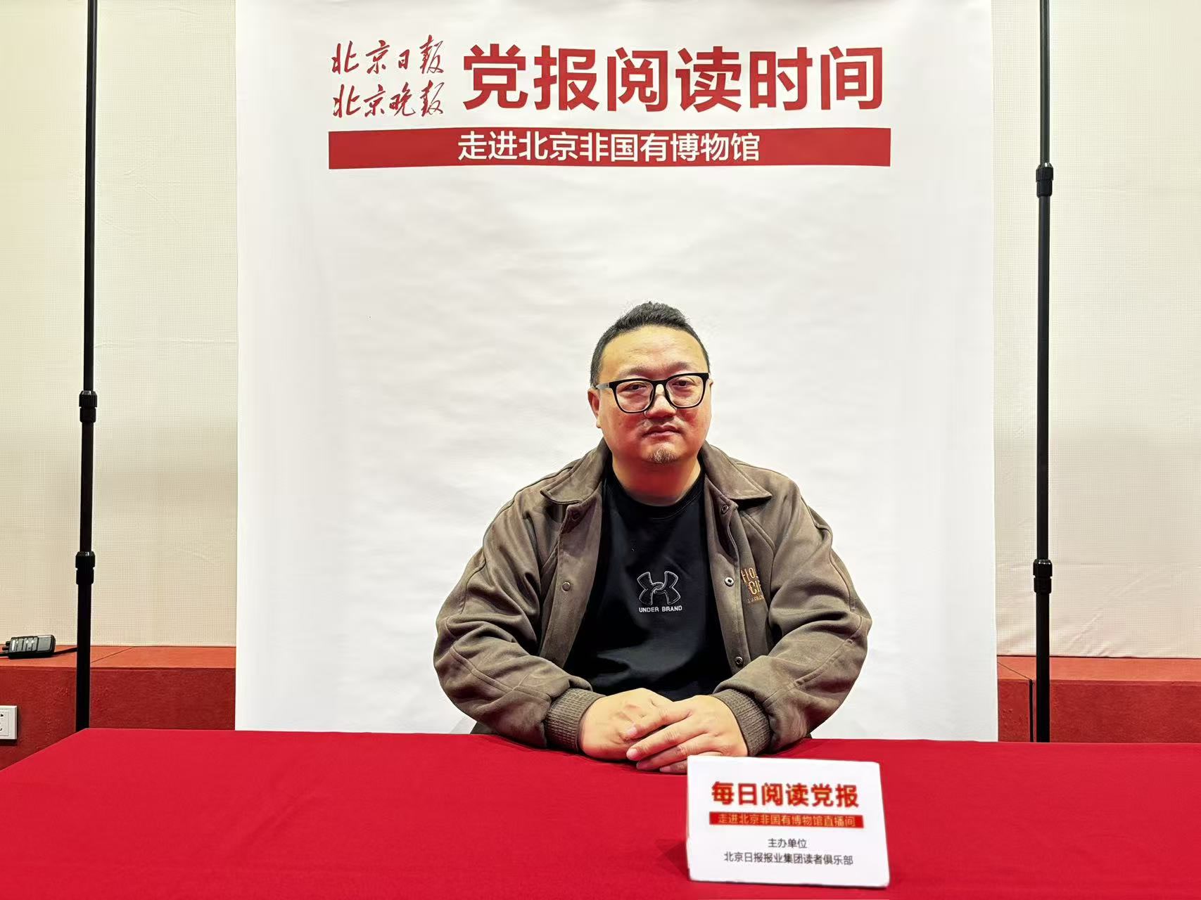 下午3时,“每日阅读党报”直播环节正式开始。本期领读人、馆长戚建钢朗读了当日《北京日报》要闻,并分享了他自大学毕业后创办博物馆的初心与历程。作为一名“80后”馆长,他阐述了保护音像类工业遗产的意义,强调博物馆作为社会教育平台在传承历史记忆、培养青少年家国情怀方面的作用。现场,他还结合党报内容与观众展开交流。