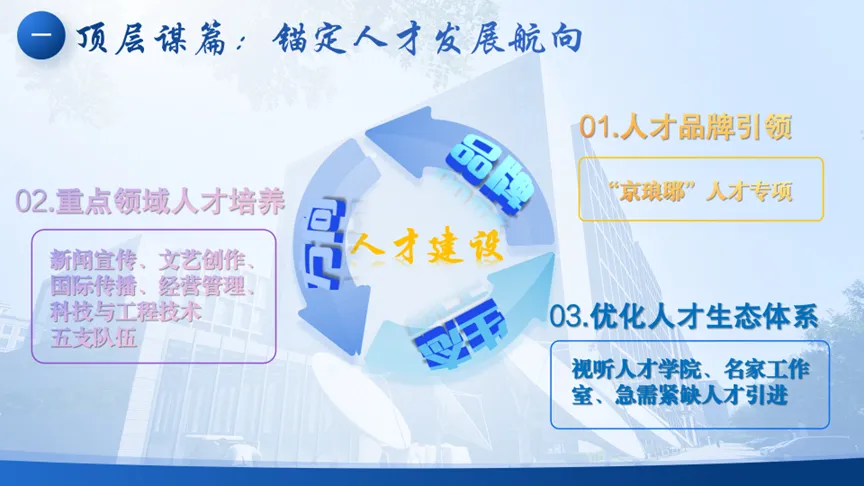 “京琅琊”计划在命名上融合传统文化意涵,寓意人才如玉般珍贵、如骨于身不可或缺。该计划设置“名家、领军、青创”三大层次,覆盖新闻宣传、文艺创作、国际传播、经营管理、科技与工程技术五大领域,实现人才精准识别与培育。
