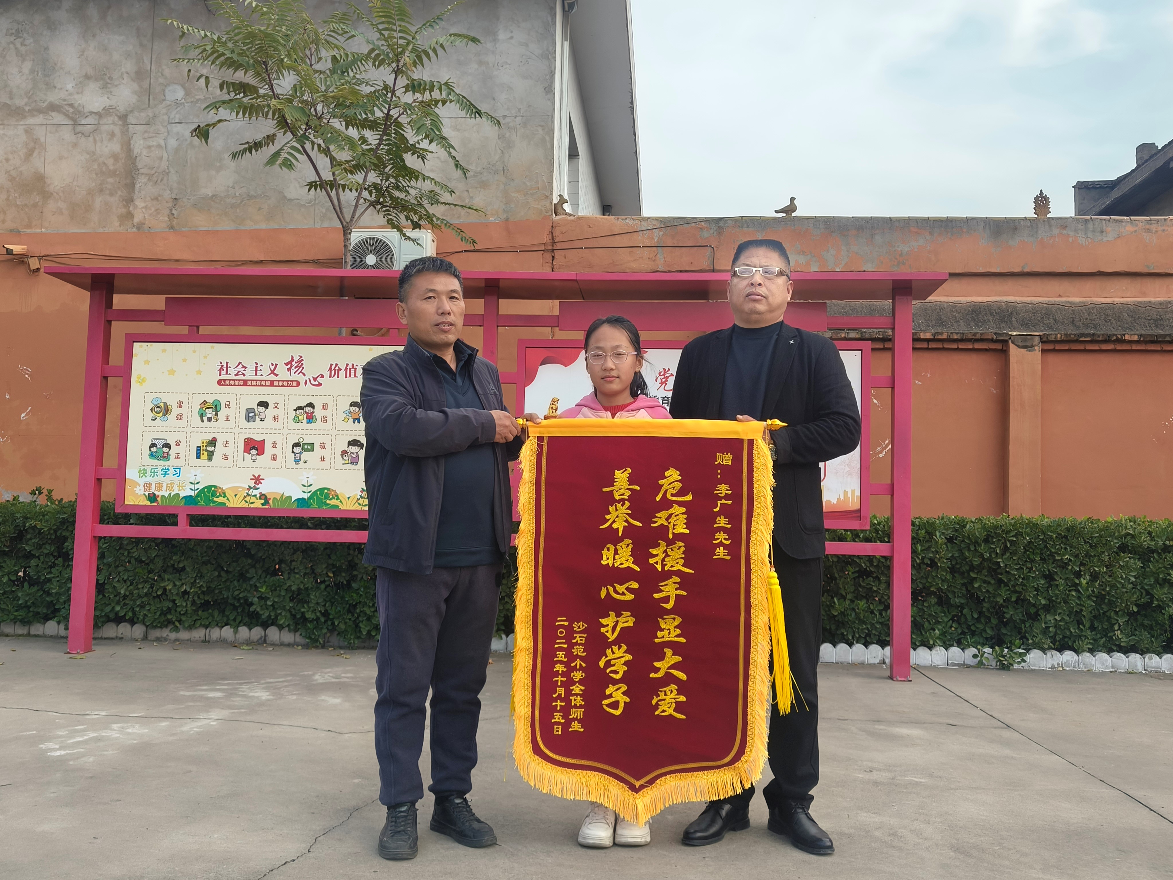11月3日,山西省万荣县沙石范村的沙石范小学操场暖意融融,一场特殊的表彰仪式在此举行。学校将一面印着“危难援手显大爱 善举暖心护学子”的锦旗,郑重赠予企业家李广生,以此致敬他危急时刻救助该校学生的善举。