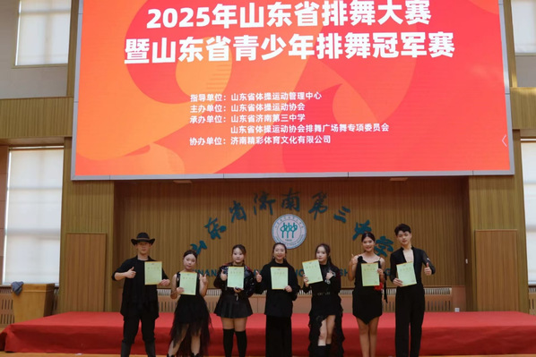 11月1日至2日,由山东省体操运动管理中心、山东省体操运动协会主办的2025年山东省排舞大赛暨山东省青少年排舞冠军赛在济南市第三中学体育馆圆满落幕。山东外事职业大学艺术学院体育艺术表演专业选派学生组队参赛,在全省20余所院校、500余名选手的激烈角逐中脱颖而出,一举获得双人平滑一等奖、双人古巴一等奖、单人初级一等奖及单人初级二等奖四项重要奖项,充分展现了学校体育艺术教育成效与学生专业风采。