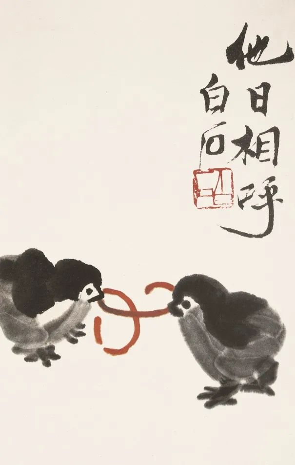 “趣”无疑是韩羽“评论宇宙”的核心引力场。在《趣眼童心》《有趣有趣》等文本中,“趣”并非轻佻的装饰,而是韩羽探触白石艺术精魂的根本路径。他敏锐捕捉到白石笔下那些“点石成金”的瞬间——小鸡雏的憨态、小鱼儿的灵动、小老鼠的狡黠——它们超越了传统花鸟画的精致美学,以原始的生命力直抵人心。这种“趣”源于一种未泯的童心,一种剥离世故后对大千世界赤诚的惊奇与拥抱。
