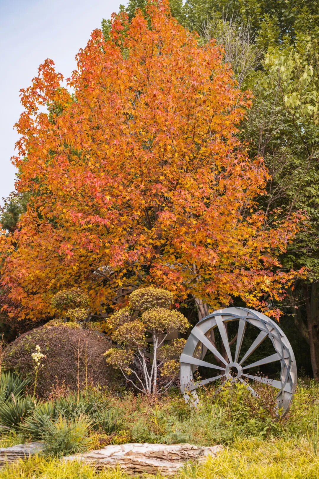 当艺术线条与自然色彩彼此妆点,造就了别有一番景致的秋园。雕塑与秋景相互辉映,艺术与自然相映成趣,曼妙的和谐美,令每一个园中人都沉醉其中。