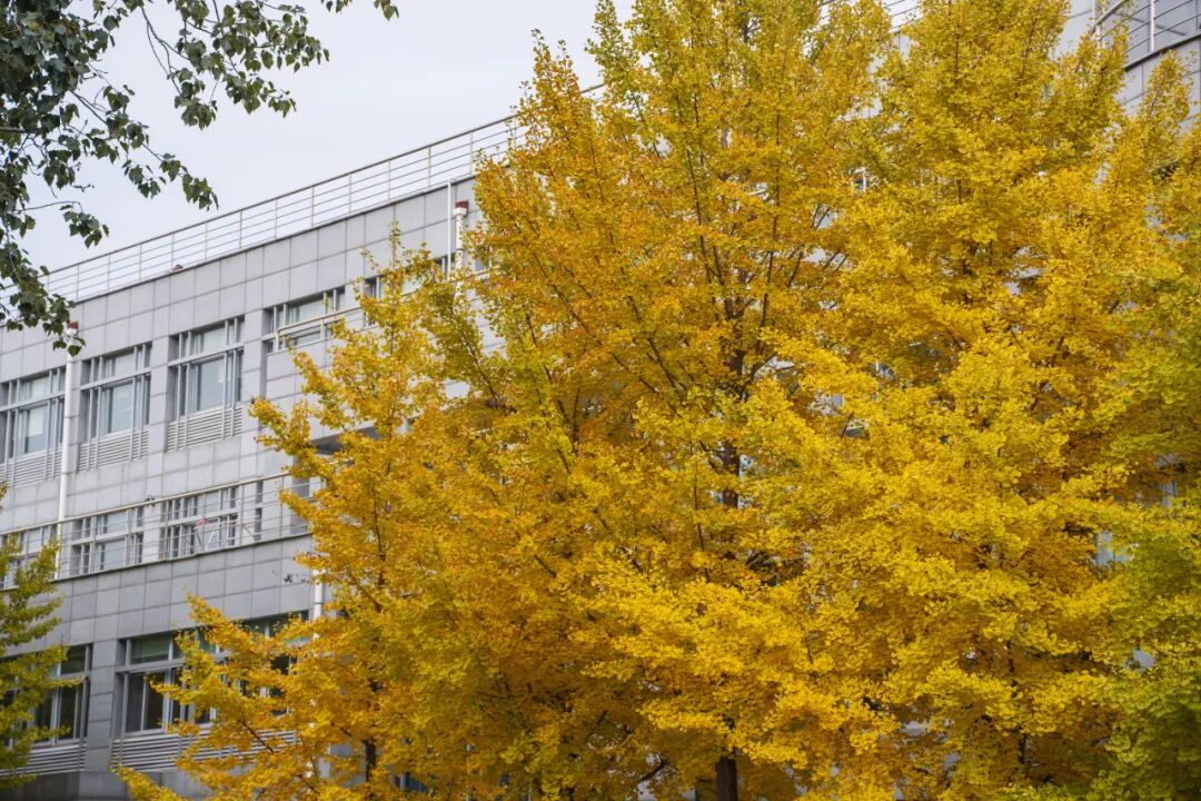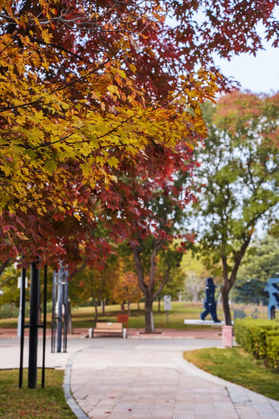 秋在创作,园中千姿百态的艺术雕塑,在赤红枫叶的簇拥下,仿佛被注入新的生命力。秋在律动,园中茫茫金灿的银杏树林,在微风中,仿佛与人们一同起舞。
