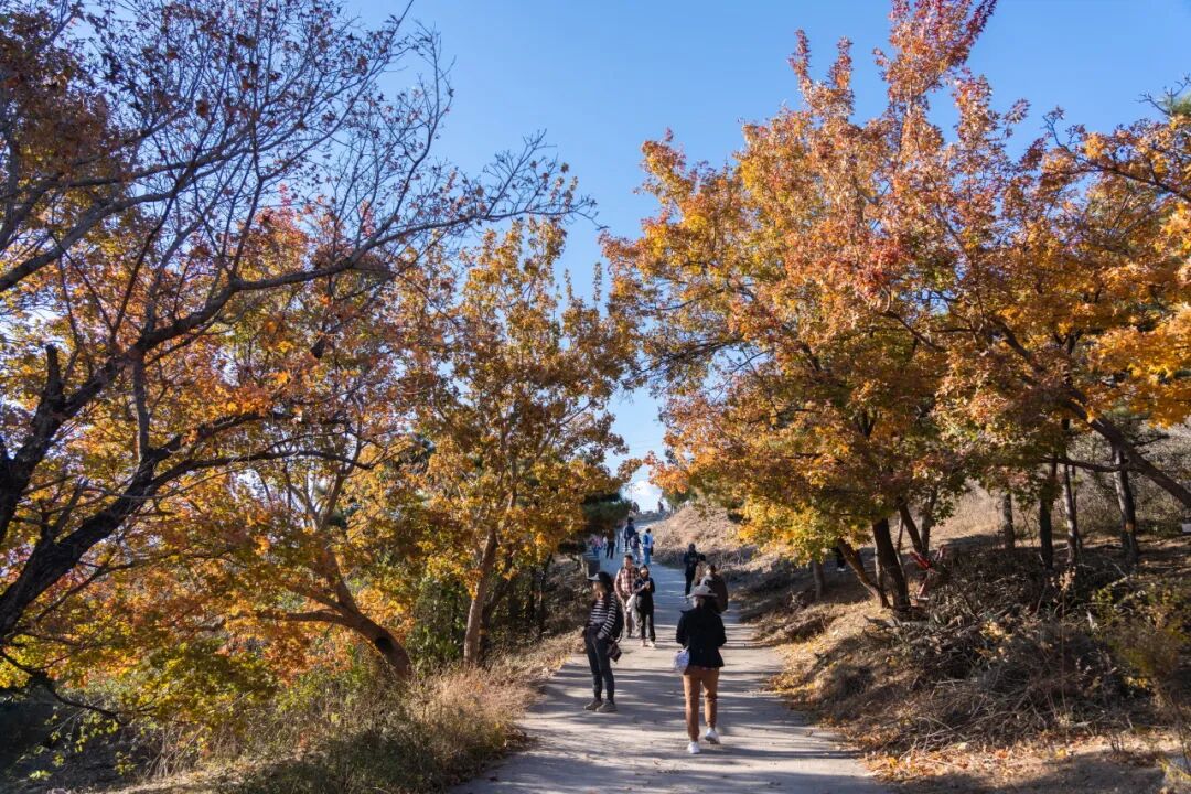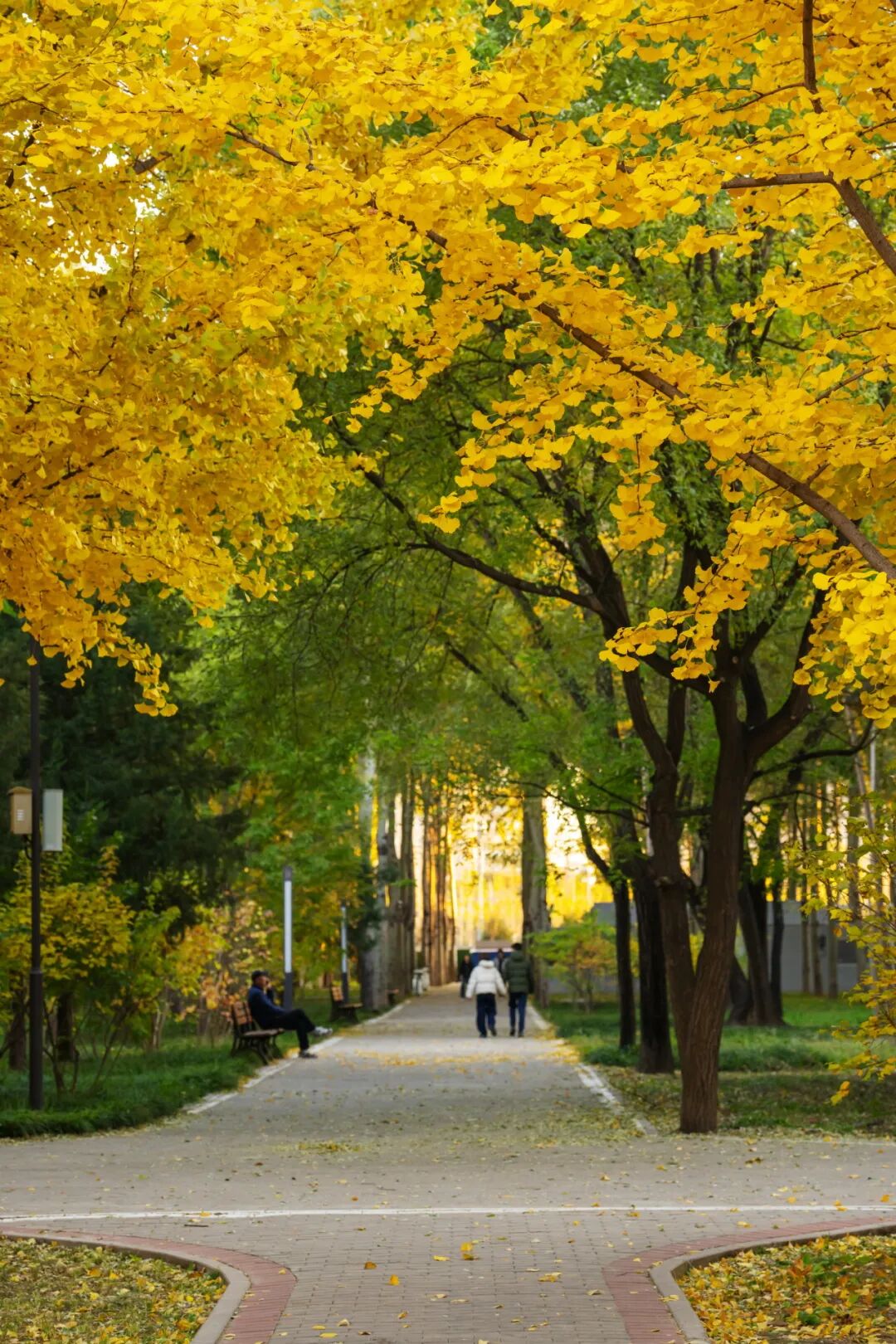人们走在小径中,听轻盈的秋风簌簌扫叶,熟悉的角落每走一步都常看常新。
