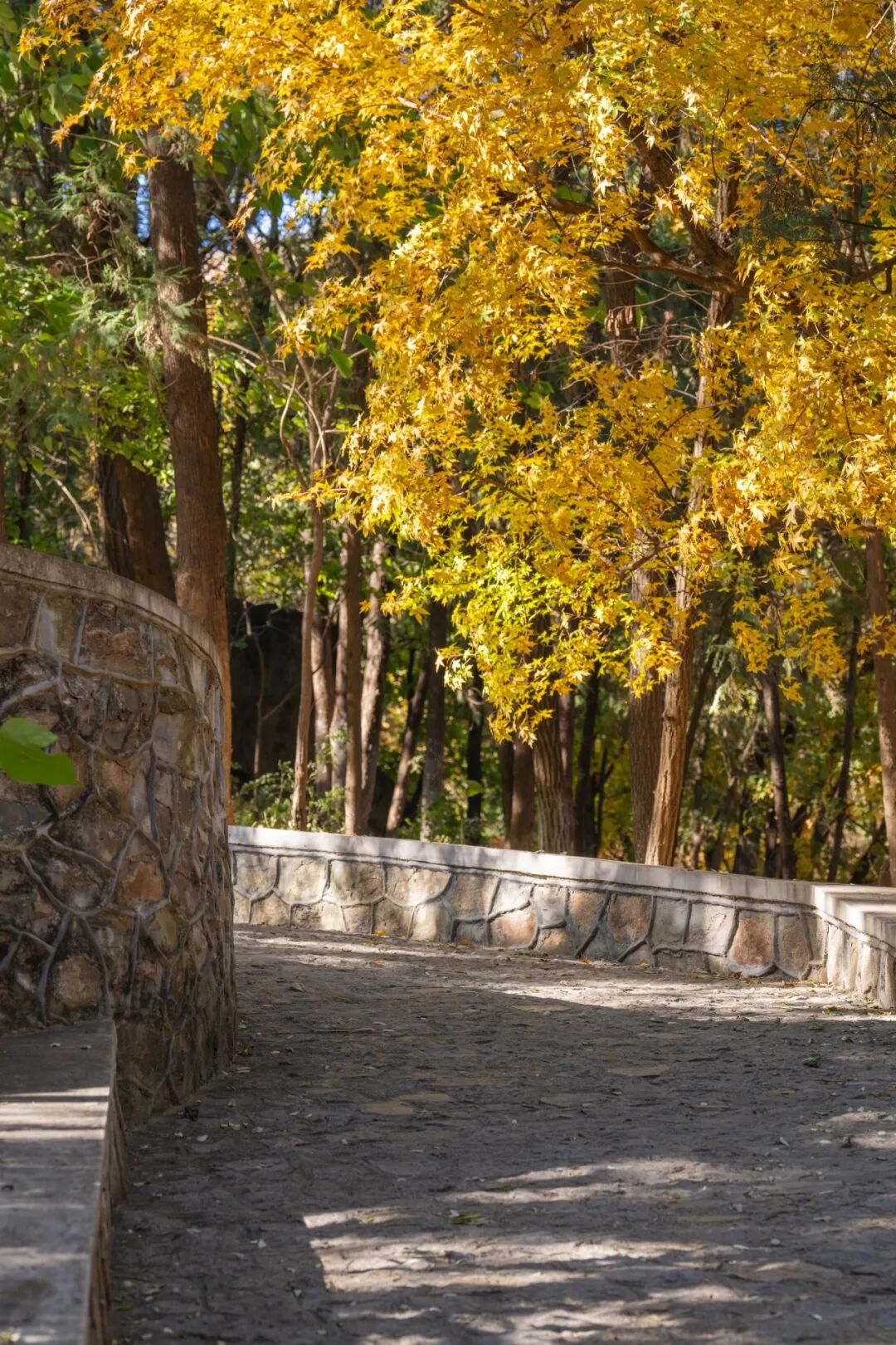秋日暖阳下,于秋风中拾阶而上,从一处到八处,在橙黄橘绿间漫步,登至山巅。