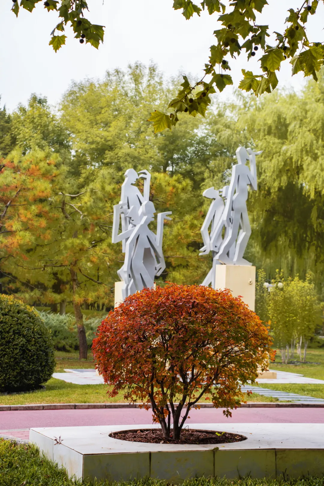 当艺术线条与自然色彩彼此妆点,造就了别有一番景致的秋园。雕塑与秋景相互辉映,艺术与自然相映成趣,曼妙的和谐美,令每一个园中人都沉醉其中。