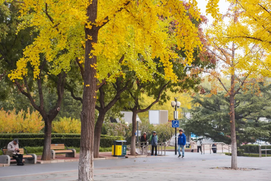 秋在创作,园中千姿百态的艺术雕塑,在赤红枫叶的簇拥下,仿佛被注入新的生命力。秋在律动,园中茫茫金灿的银杏树林,在微风中,仿佛与人们一同起舞。