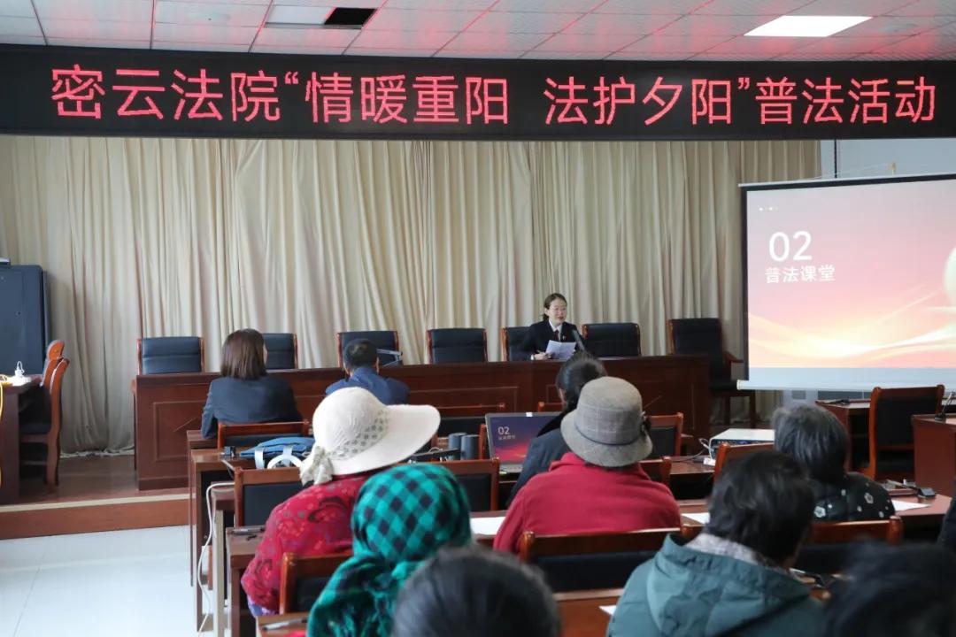 重阳节前夕,密云法院巨各庄法庭走进庄户峪村,将身边常见的、普遍关心的法律知识送到老人身边。栗茜法官从赡养纠纷、财产继承、婚姻家庭等多个角度,深入浅出地分析了涉老案件的特点和成因。“订立遗嘱时要注意哪些问题?”“遇到子女不履行赡养义务该怎么办?”这些问题在栗茜的讲解中一一得到了解答。随后播放的涉老反诈普法短剧更是将现场气氛推向了高潮,在场老年朋友们时而捧腹大笑,时而认真观看,在轻松愉快的氛围中掌握了识骗防骗的知识要点。