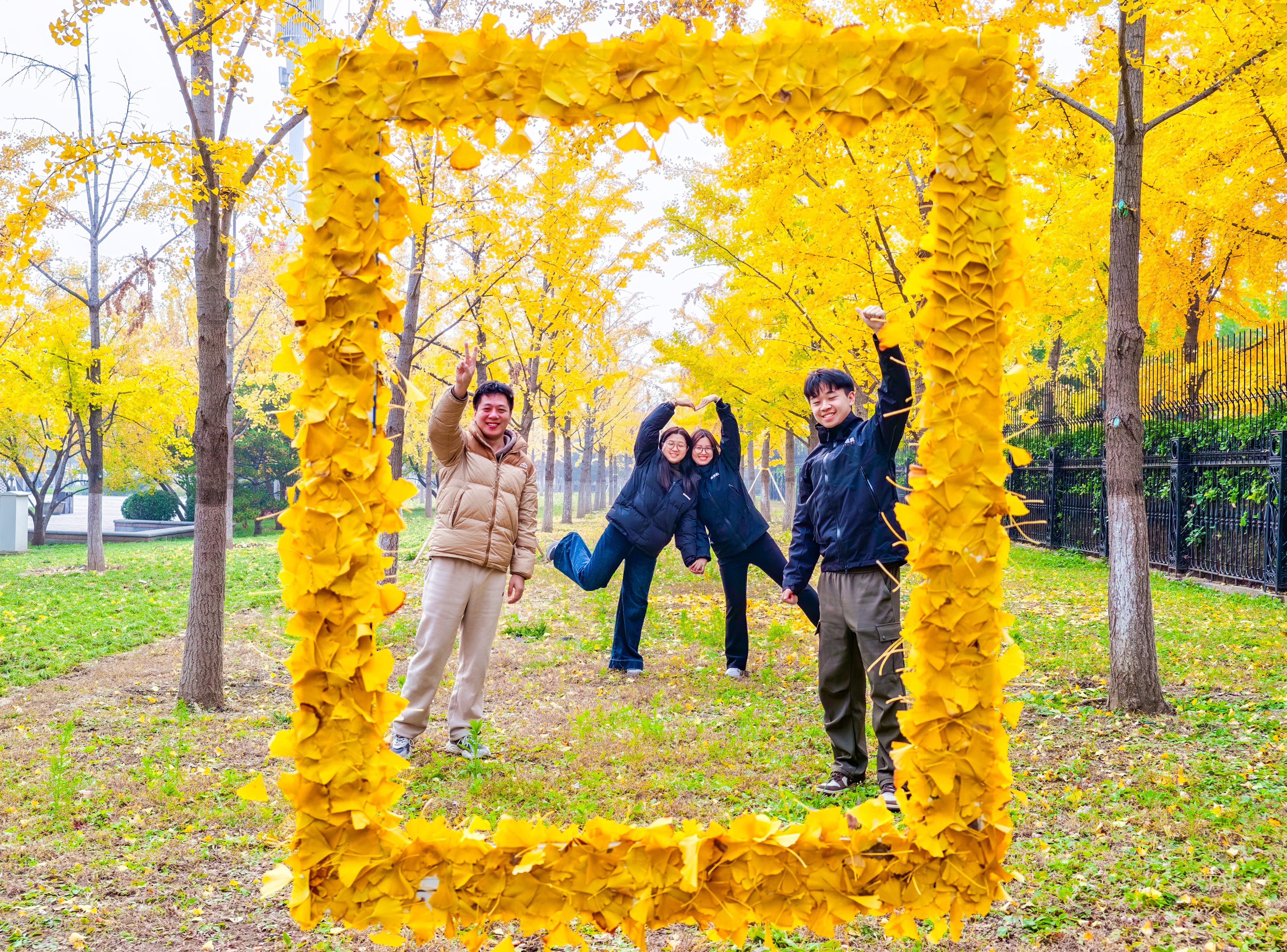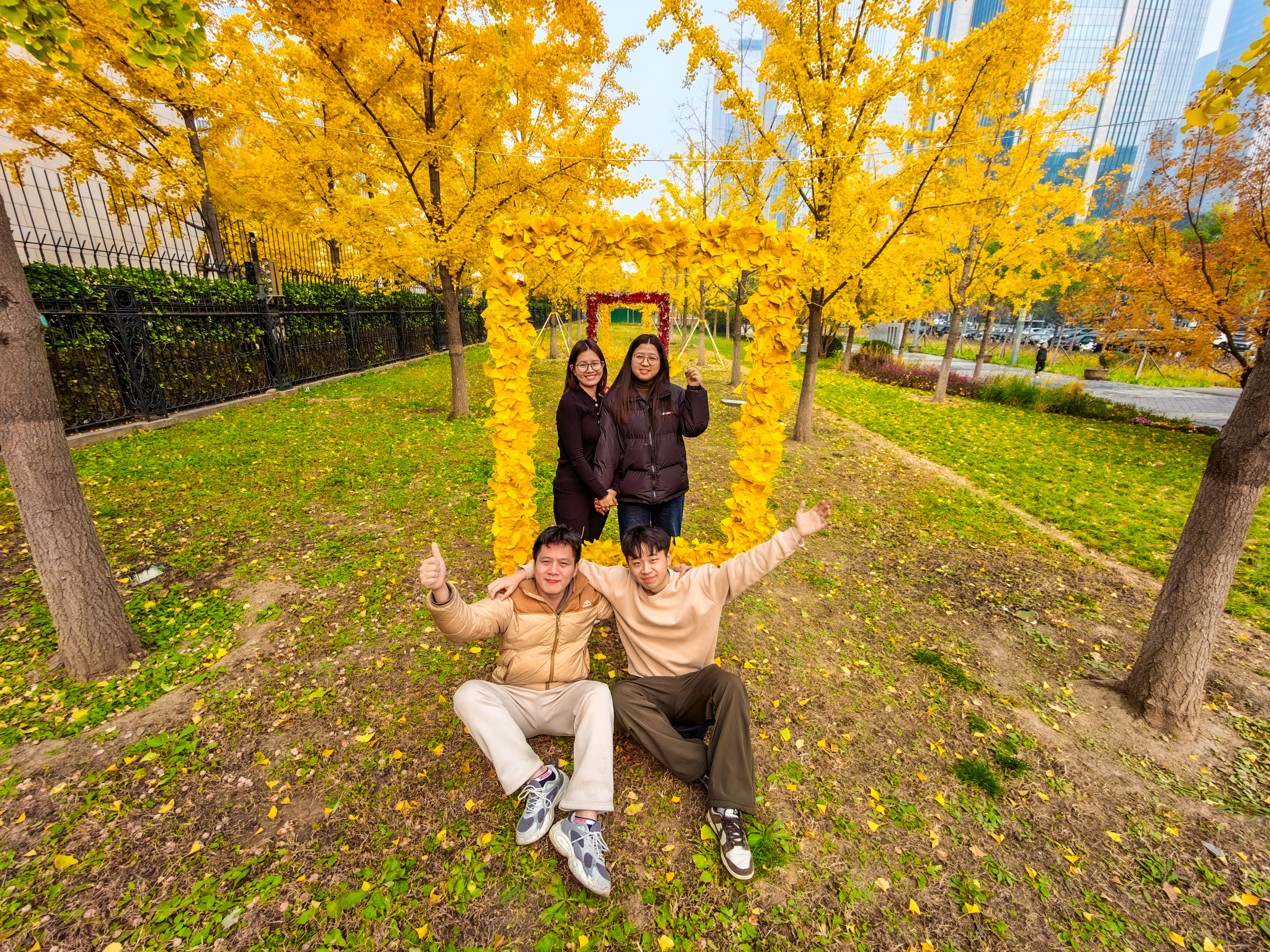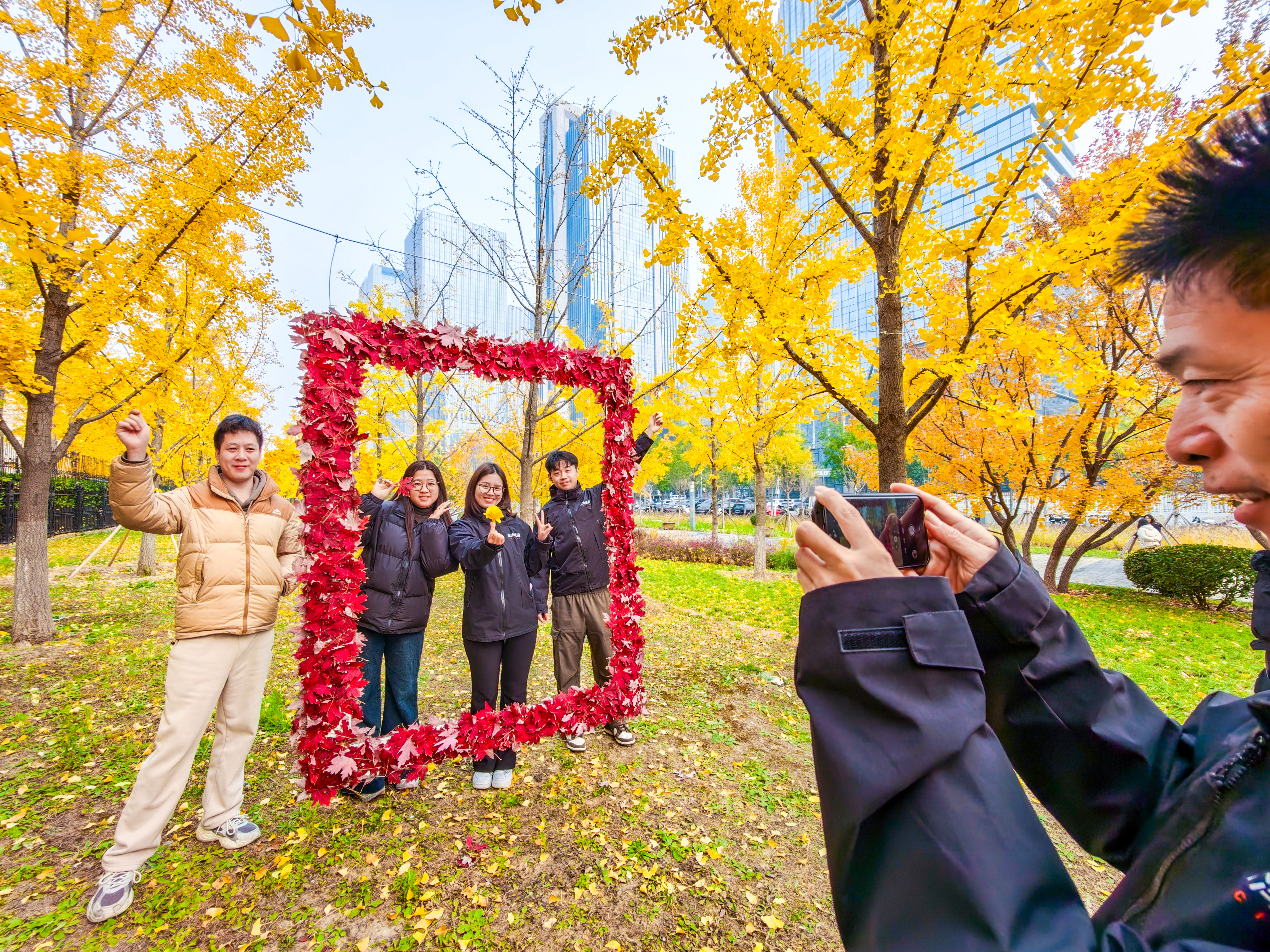 11月5日,丽泽金融商务区金中都遗址公园内,三个1.5米高的“秋叶画框”成为市民“限时”打卡的景观。“秋叶画框”用落下的枫叶和银杏叶粘贴而成,巧妙地将自然秋色与城市景观融为一体,收获市民广泛好评。