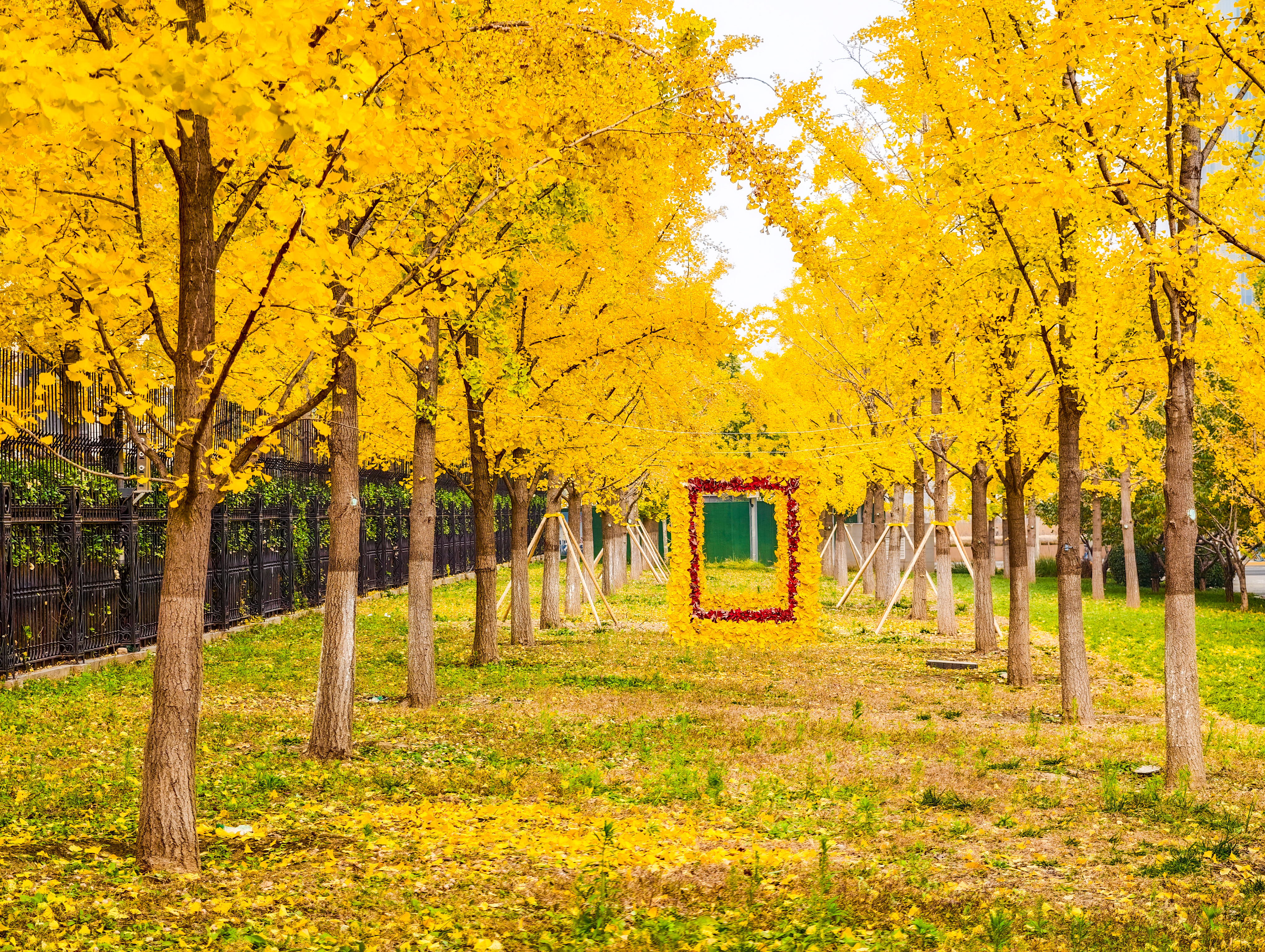 “这个创意的起因很简单,我们看到路过的人们在落满银杏叶的金钟都遗址公园内打卡,就想怎么让秋天不‘落’下来?”丽泽城资市政管理部负责人刘强站在画框前,向记者讲述了这个暖心创意的由来。