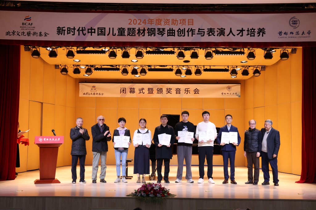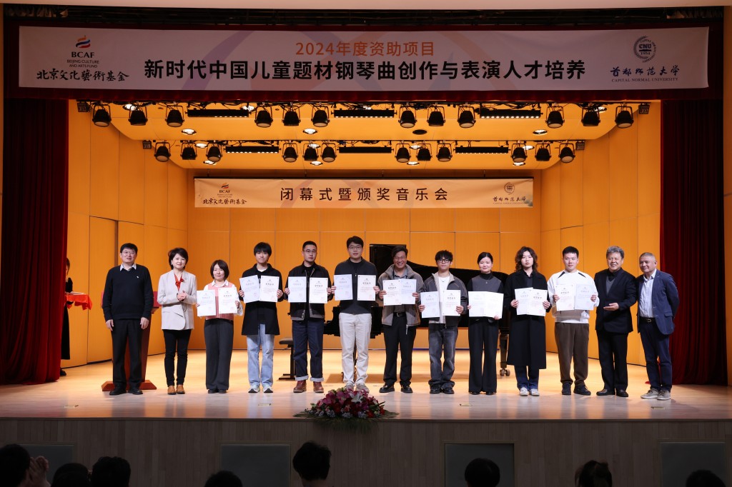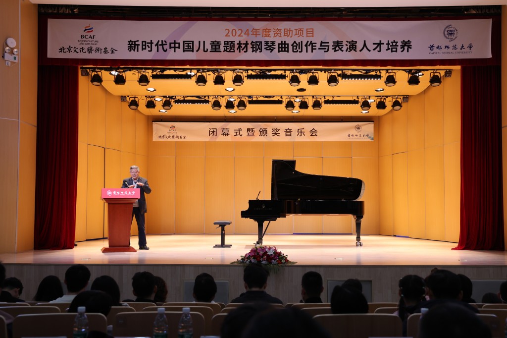 11月2日,北京文化艺术基金2024年度资助项目“新时代中国儿童题材钢琴曲创作与表演人才培养”闭幕式暨颁奖音乐会在音乐学院举行。学校党委副书记孙晓峰,中国音乐学院党委常委、副院长黄虎,中国音乐家协会副主席、总政歌舞团原团长、著名作曲家张千一,中国音乐学院教授高为杰、姜万通,中央音乐学院作曲系教授向民,首都师范大学音乐学院教授王安国、张大龙,《音乐周报》董事长、总编辑李红艳,人民音乐出版社党委书记、社长、总编辑杜永寿等嘉宾以及在京媒体代表出席了本次活动。活动由音乐学院党委书记李晓东主持。