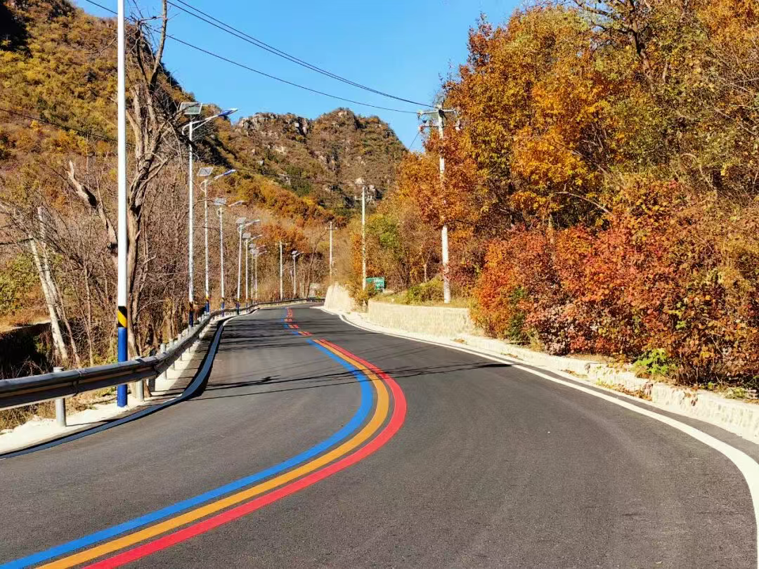 连接西崔村与西峪村的西西路,同样通过大修焕发新活力。如今走在西西路上,崭新锃亮的沥青路面在山间秋景与城镇村景的映衬下格外靓丽,道路串联起文旅农体商融合发展链条,成为助力乡村振兴的重要纽带。