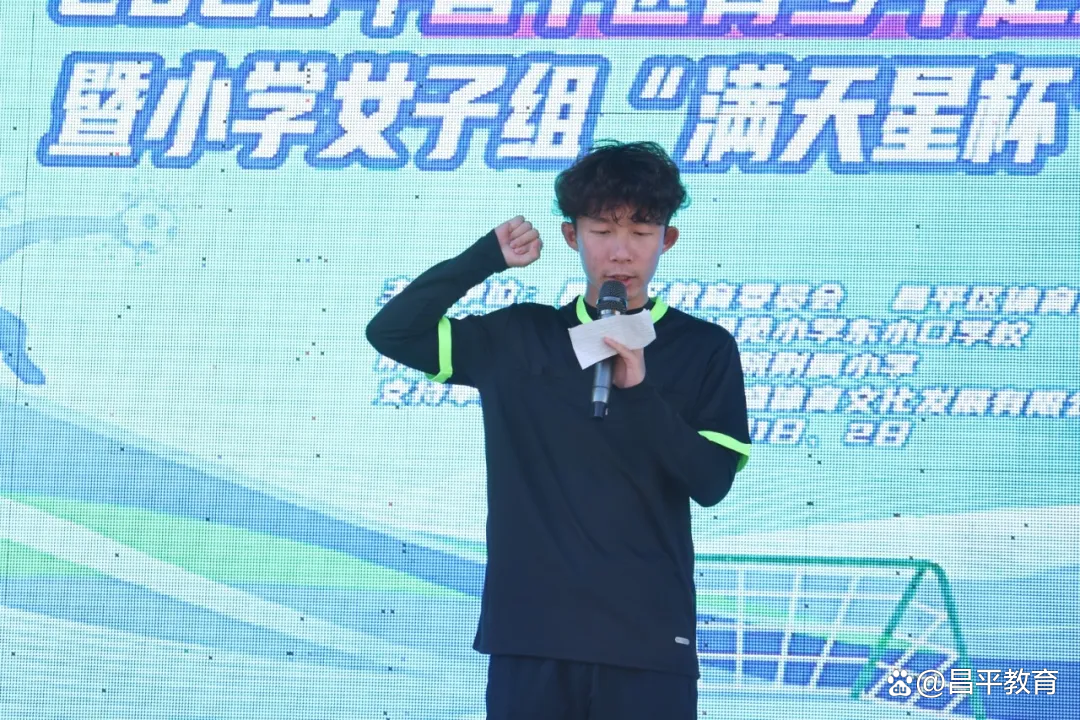 天通苑小学东小口学校执行校长李茂平在赛前致辞并祝愿每一位球员都能在绿茵场上收获快乐、收获成长。