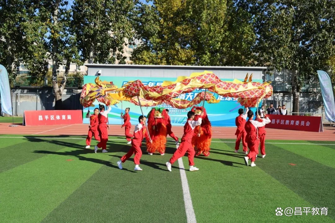 闭幕式上,由东小口学校武术社团的舞龙舞狮表演登场,金龙与雄狮灵活舞动为仪式增添浓厚的喜庆氛围。