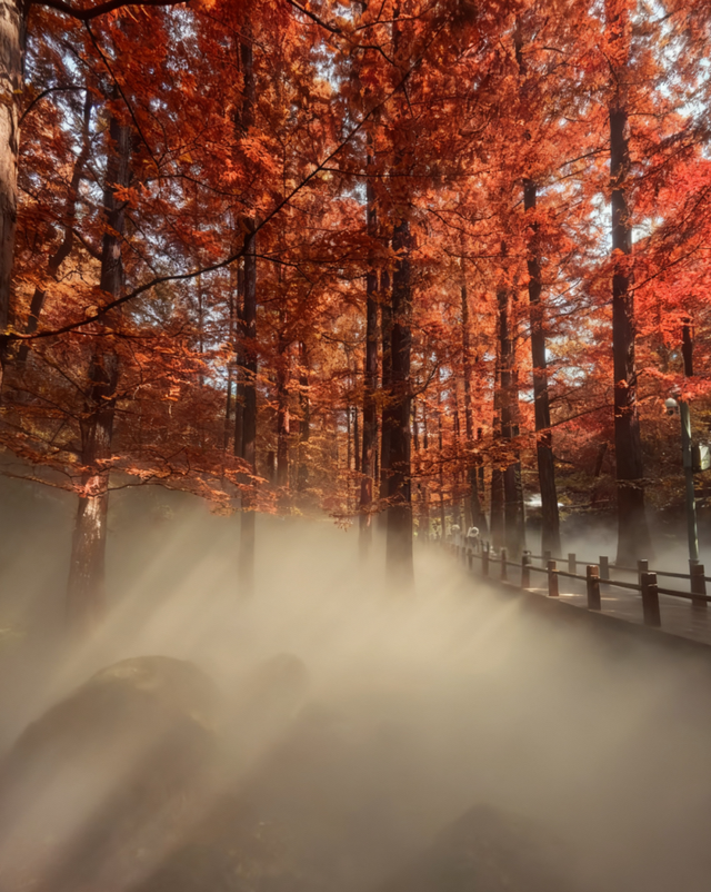 目前,位于国家植物园樱桃沟内的水杉林已经进入最佳观赏期,水杉林景区喷雾恢复开放。