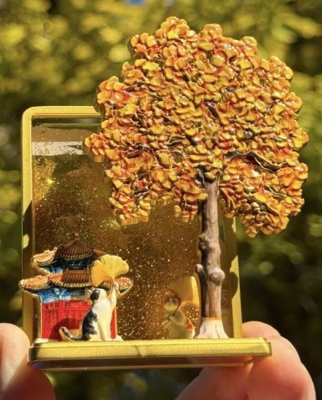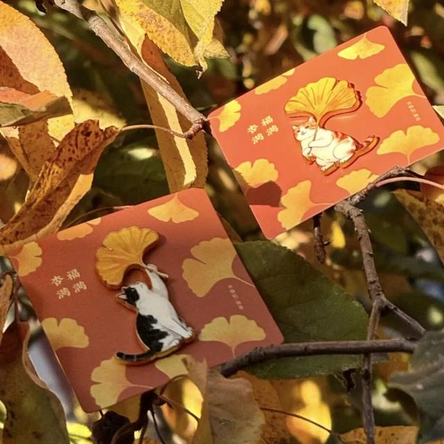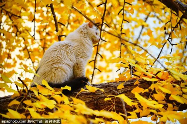 寺猫“糖糖”“秀秀”与银杏互动的画面