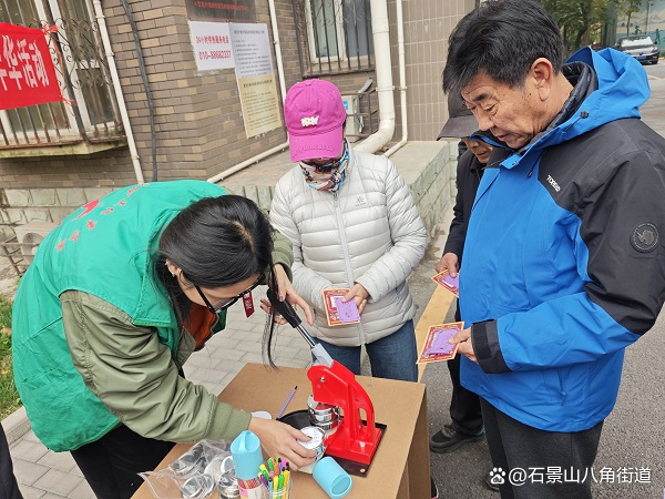 现场分别设置了防触电体验区、器材展示、趣味保龄球、消防徽章制作4个趣味小游戏,其中消防徽章制作项目吸引众居民驻足参与,大家写下各自心中的消防提示语并通过工作人员的协助做成一个个精美小徽章。