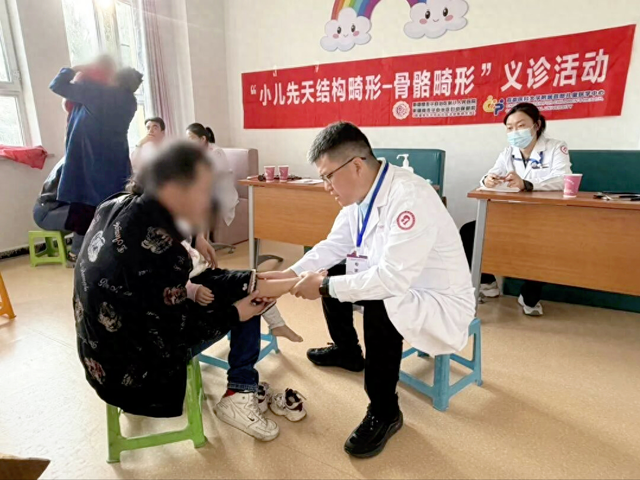 在义诊现场,刘振江为当地患儿进行了细致的体格检查与筛查,发现多例先天性马蹄内翻足、发育性髋关节脱位、脊柱侧弯、先天性肌性斜颈、脑性瘫痪、先天性多指、并指等先天结构畸形患儿,为其提供了专业诊疗与康复指导。许琪针对生长发育迟缓、语言发育障碍、营养问题等进行了评估与干预,并对疑似孤独症谱系障碍的儿童提出了早期康复建议。胡晓明和孙媛媛充分发挥专业所长,诊治了肺炎、湿疹、贫血、肾病、鼻炎、代谢性疾病、先天性心脏病等多种疾病,并筛出两例危重患儿进行转诊。