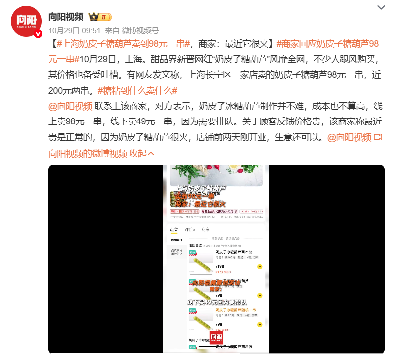 奶皮子糖葫芦突然爆火上海有门店一串卖到98元