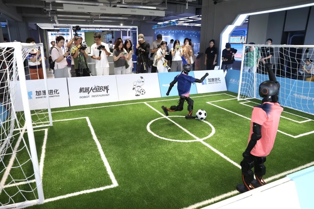 △机器人大世界展示场景——足球机器人为观众演示射门。资料图