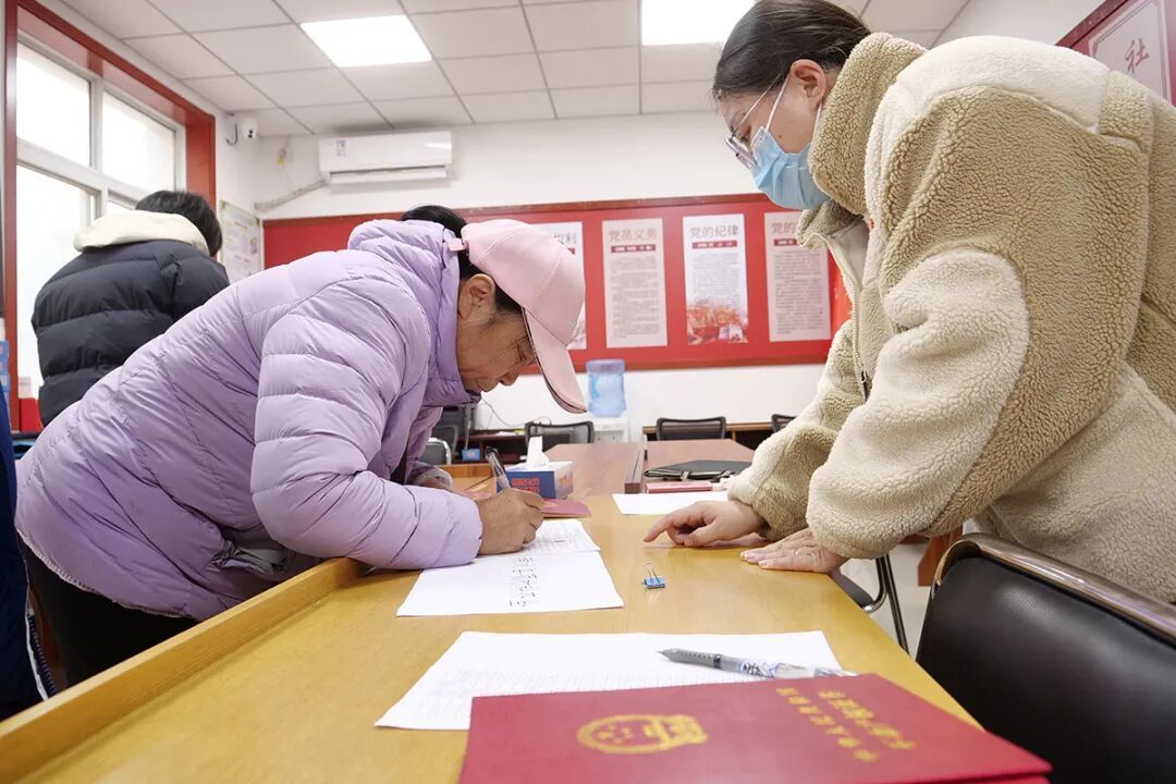 工作人员为回迁居民办理领取不动产权证书相关手续。