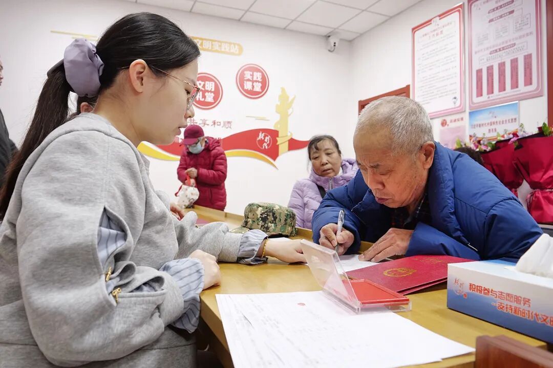 在仁和镇新时代文明实践所,陆续有回迁居民前来领取不动产权证书。对大家的疑问,工作人员耐心细致地解答,现场秩序井然。