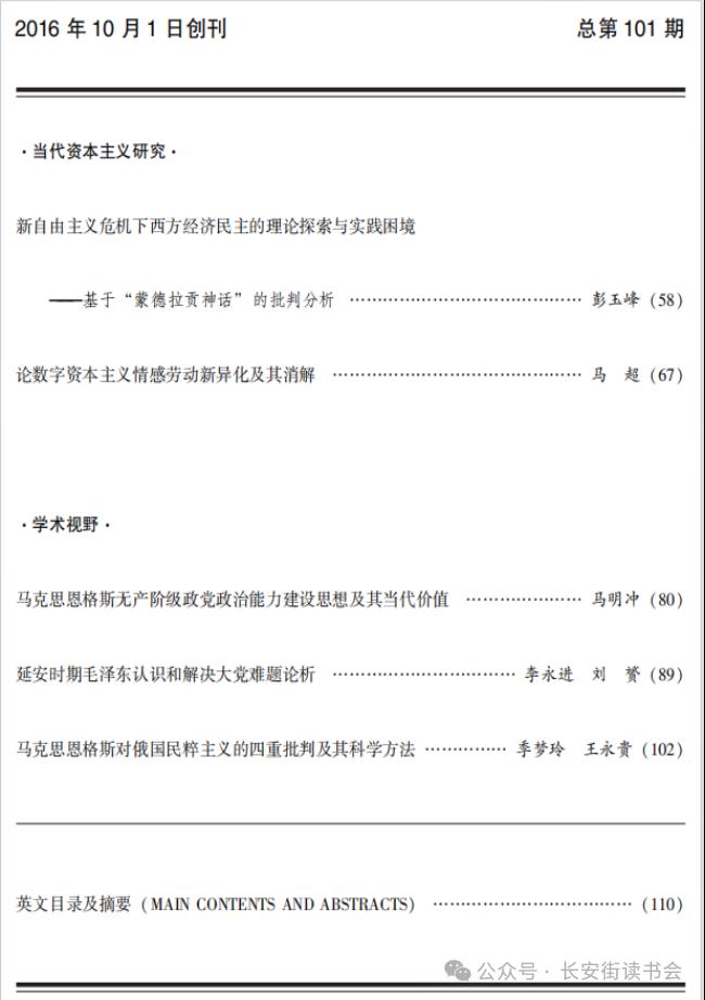 主办单位:中国社会科学院马克思主义研究院;社会科学文献出版社