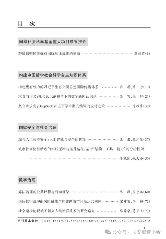 王秉、王渊洁在《湖南师范大学社会科学学报》2025年第3期撰文《综合人工智能安全:人工智能与安全的共舞》指出,随着人类步入人工智能时代,人工智能安全问题日益凸显,并成为全球关注的焦点。基于人工智能与安全二者深度融合的视角提出综合人工智能安全概念,对全面审视和认识人工智能安全,进而维护和塑造人工智能安全具有重要理论和现实意义。综合人工智能安全是系统安全维下的人工智能系统要素的安全、安全系统维下的安全人工智能系统的要素,以及安全影响维下的人工智能对安全的影响的综合。系统安全维下的人工智能系统要素的安全包括人工智能算法安全、人工智能算力安全和人工智能算据安全;安全系统维下的安全人工智能系统的要素涉及安全含义要素、安全领域要素、安全状态要素、安全环节要素、安全因素要素、安全策略要素、安全体系要素、安全能力要素、安全时空要素和安全参与要素;安全影响维下的人工智能对安全的影响包括正面与负面的双重影响。