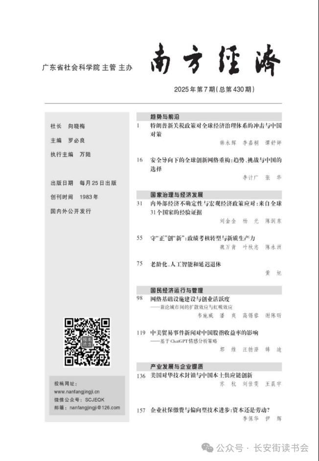 李计广、张华在《南方经济》2025年第7期撰文《安全导向下的全球创新网络重构:趋势、挑战与中国的选择》指出,贸易保护主义抬头、地缘政治紧张局势加剧以及全球公共卫生事件突发等因素,正推动全球生产网络加速从效率导向向安全导向转变。作为在全球生产网络的基础上衍生而来的重要概念,全球创新网络的重构实际上早于全球生产网络的重构,并且同样呈现出明显的安全导向。文章基于EPO专利数据库对安全导向下的全球创新网络重构趋势进行了分析,研究发现,在全球创新网络重构过程中,安全导向的特征集中体现在内向化和区域化两个方面。其中,内向化表现为各国更加注重提升自身的技术研发水平和保护自身的技术优势;区域化则表现为创新合作在地理上更加集中,各国倾向于在区域内建立更为紧密的创新伙伴关系,以此降低跨境创新合作的风险和不确定性。在此背景下,中国创新活动存在以下特点:一方面,中国创新合作在内向化方面的特征较为明显,这得益于创新体系的日益完善与相关支持政策的出台;另一方面,中国创新活动区域化特征并不显著,体现为区域内创新合作不紧密以及对区域外的发达国家存在较大的依赖。内向化明显和区域化不足的交互情景使得中国创新活动存在同质化、扁平化和内卷化问题。文章通过刻画全球创新网络重构趋势和在此过程中中国面临的挑战,为中国融入全球创新网络提供一定的政策参考。面对全球创新网络的安全导向重构,中国融入全球创新网络应当提高自主创新能力,实现资源和技术的双向流动,最终提高中国整体创新能力和水平。