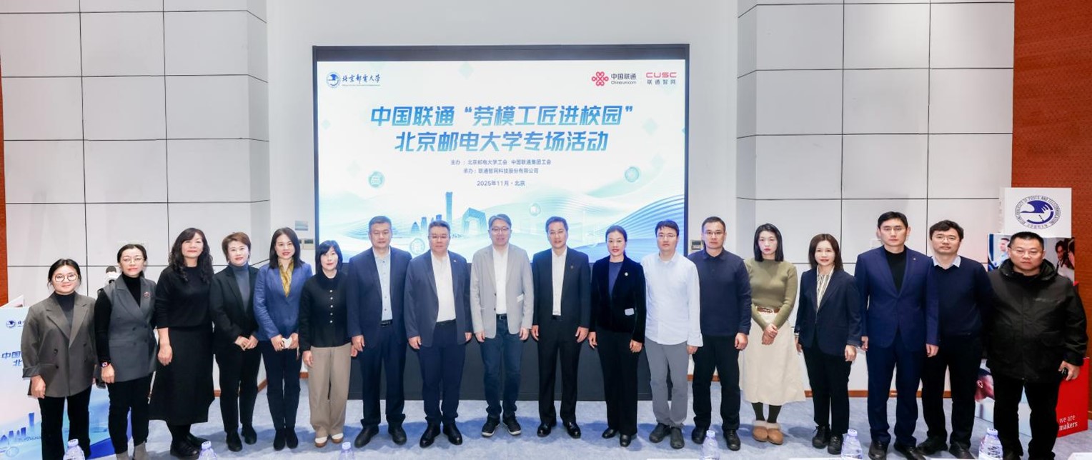 党的二十届四中全会强调“统筹教育强国、科技强国、人才强国建设”“围绕科技创新、产业发展和国家战略需求协同育人”。中国联通和北京邮电大学工会贯彻落实全会要求,着力推动劳模精神、劳动精神、工匠精神(以下简称“三个精神”)融入育人实践,以共建联合实验室、实践基地为载体,探索校企协同赋能的长效机制,为教育强国、科技强国建设注入新动能。11月5日,双方联合启动“劳模工匠进校园”活动,北京邮电大学党委副书记、工会主席曲昭伟,中国联通集团工会常务副主席傅铁夫,联通智网科技公司党委书记、董事长、总经理张然懋出席,北京邮电大学专家学者及师生代表、中国联通劳模工匠代表120余人参加活动并开展深入交流。活动由北京邮电大学工会常务副主席许林杰主持。