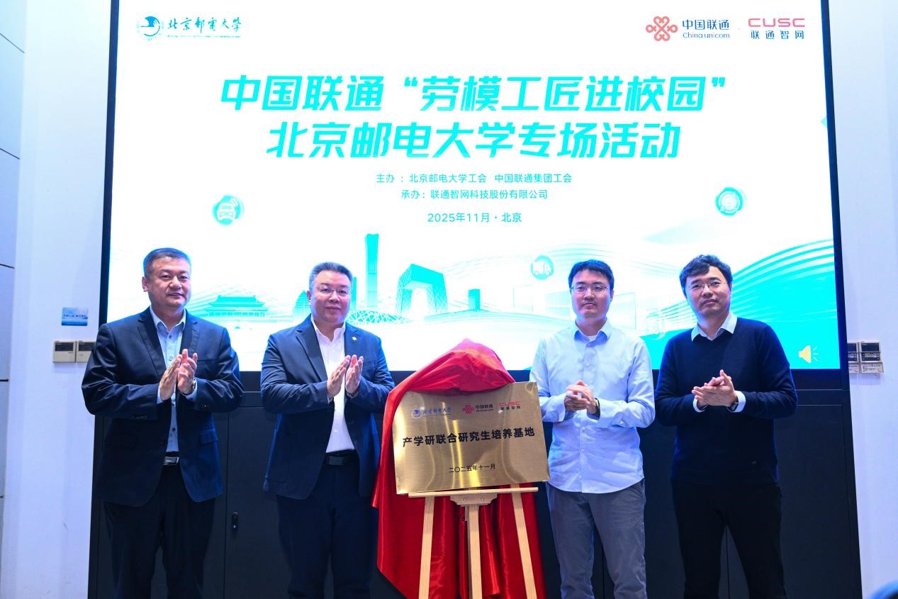 双方聚焦“科研攻关、成果转化、人才培养”定位,揭牌成立“北京邮电大学-联通智网科技产学研共建实践基地”,进一步深化了产教融合创新实践模式,丰富“劳模工匠助企行进校园”的形式和载体,实现从联合攻关到双向赋能。
