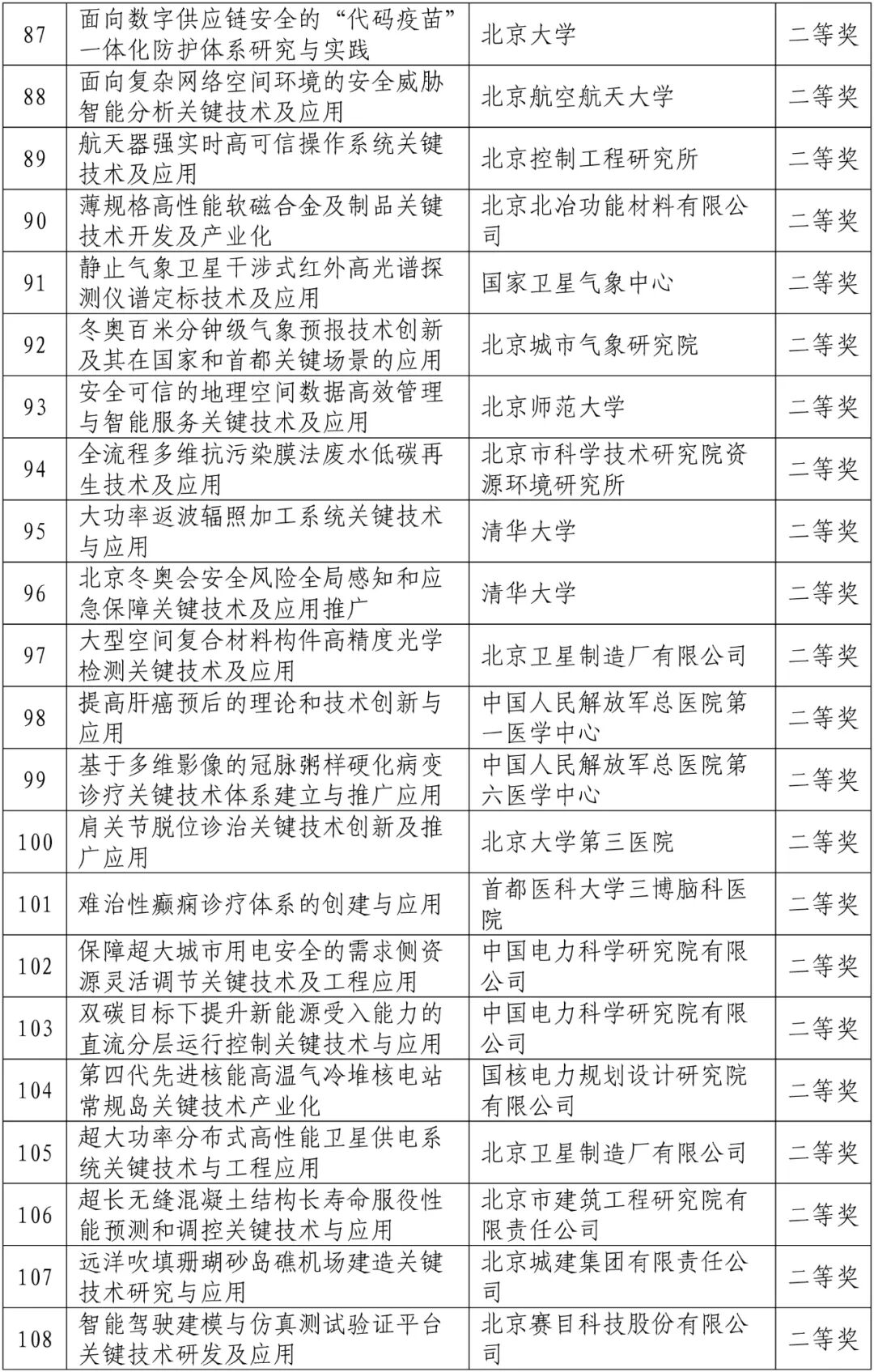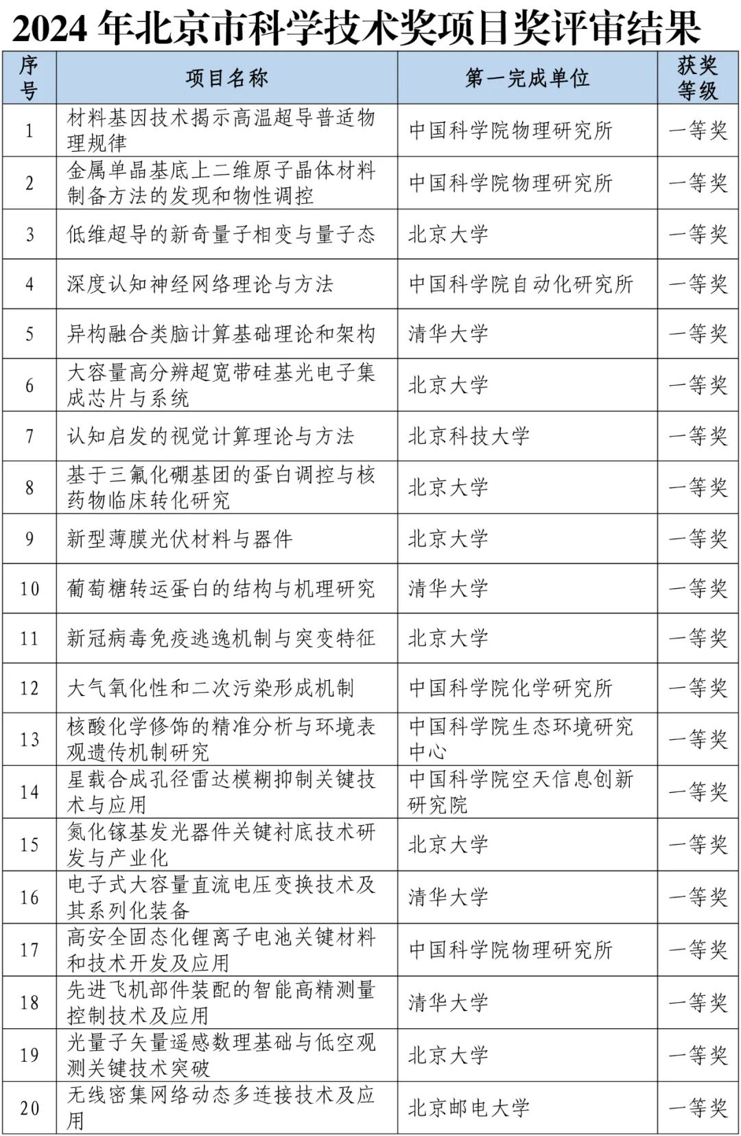 北京市科学技术奖正式公布