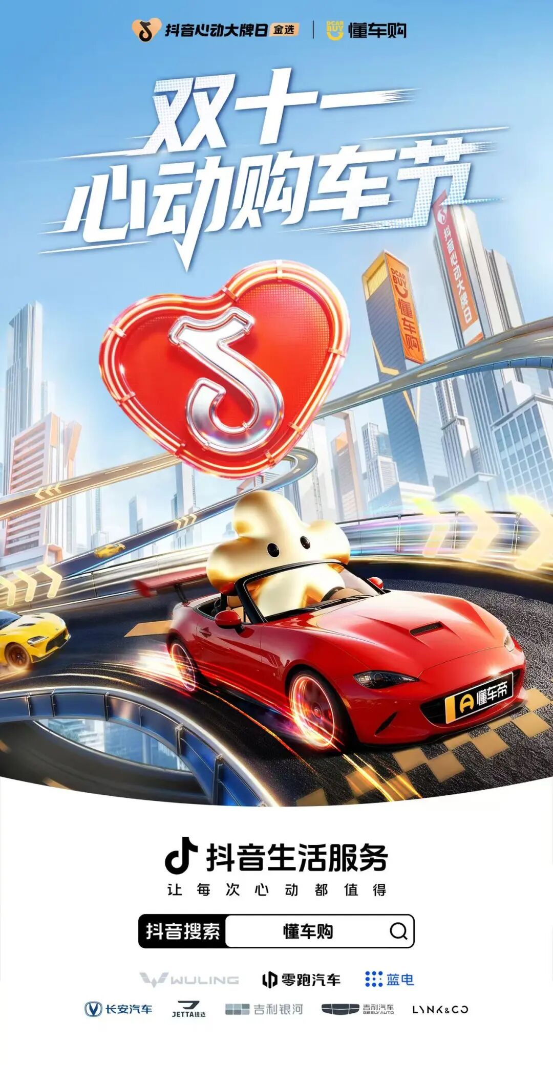 双十一抖音购车节联合9大知名车企,包括一汽奥迪、凯迪拉克、别克、长安、五菱等40多款主流车型,实现多品牌一站对比,轻松选车。平台联合品牌提供百万元补贴,叠加各类优惠,实现“购车折上折”。懂车帝“懂车购”提供选买支持及独家权益,更有亿级“平台通兑补贴”,购券后多品牌门店通用,真正做到“买车先买券,真补真省钱”。而“抖音心动大牌日·双11心动购车节”线下集市,则在首钢园一高炉南广场给你带来度假式购车体验。