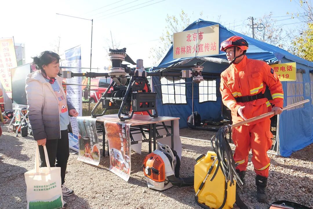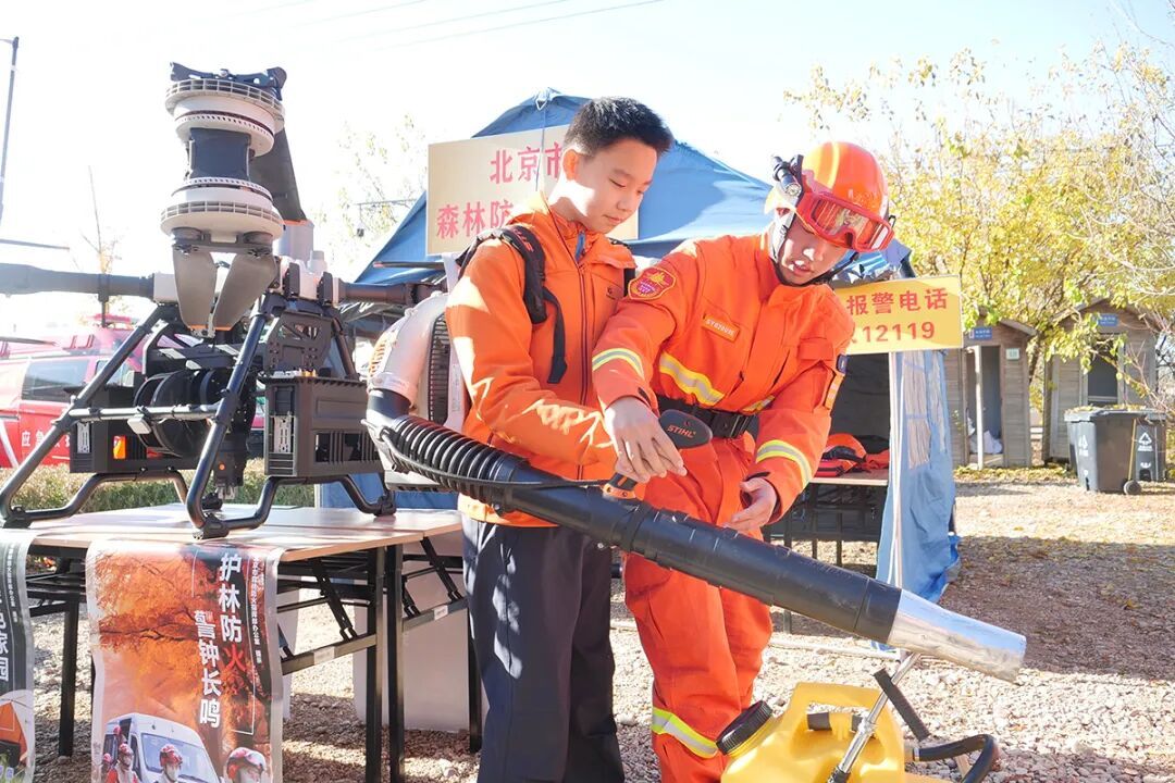 “快看,这个风力灭火机风力真大!”活动现场的另一角,区森林消防队带来的专业装备引起了市民的注意。队员们一边操作演示,一边向围观的市民介绍各种装备的用途和性能。