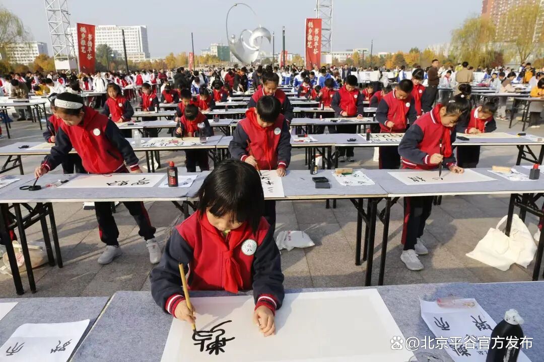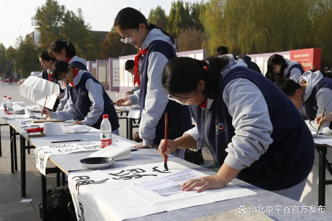 活动由平谷区教育两委主办、平谷区青少年活动中心承办,是平谷教育高质量发展大会后深化“六堂课”育人理念、落实美育浸润行动的重要实践。来自全区各校的千名学子以纸为卷、以墨为言,用一笔一画书写中华文脉,生动展现“中国书法之乡”的美育成果与青春风采。