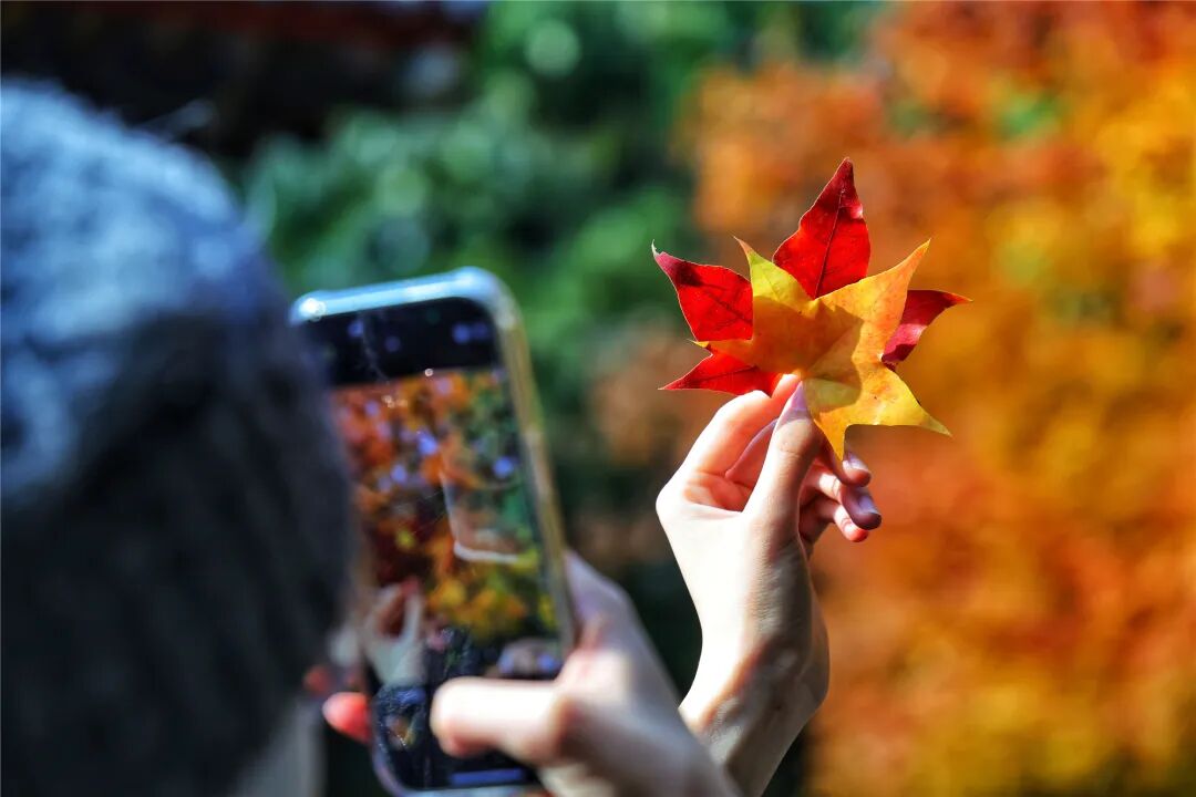 在智能体验区,科技与秋景碰撞出别样乐趣。“AI拍照亭”前总排着长队,游客对着镜头摆出俏皮表情,屏幕上即刻生成叠加银杏特效的创意合影,引得阵阵欢笑;“自动打卡签到机”旁,大家纷纷扫码,收获独特的纪念印章;“留言明信片打印机”前,有人低头写下游园感悟,刚打印好的卡片还带着墨香,就被小心翼翼地收入袋中,把现场的美好定格成永恒。
