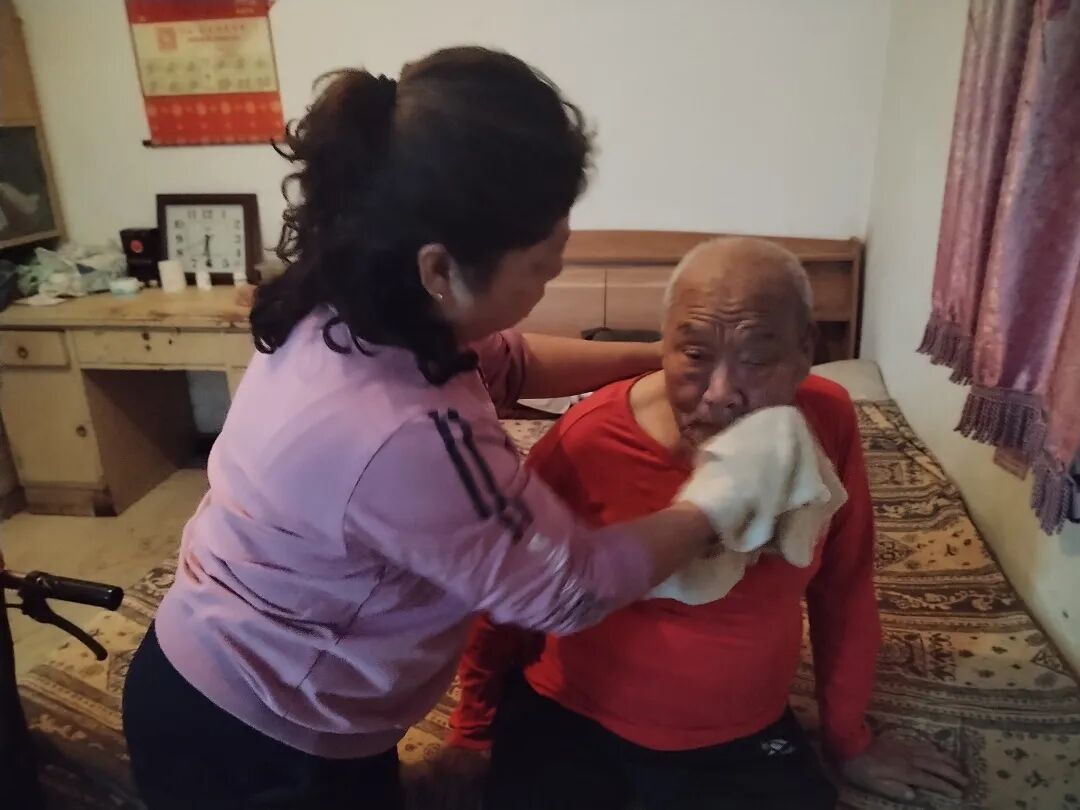 2016年6月,儿子大学毕业,邸照利长舒了一口气,感觉身上的担子轻了一些,公公婆婆也跟着高兴。谁知还没高兴多久,公公却又查出长了直肠瘤。经手术治疗后,大便不受控制,邸照利需要经常帮他清理并换上干净的衣物被褥。没过多久,婆婆第三次脑卒中导致吞咽功能受损,不会吃不能动,只能躺在床上并通过鼻饲管喂流食。