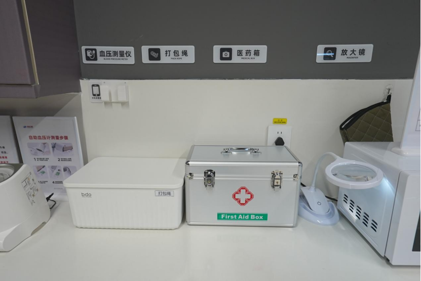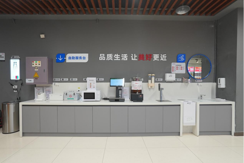 作为AI新质零售旗舰店,此次升级的核心目标之一,便是重塑有温度的服务体验。在门店入口处设立的“一站式便民服务区”,可为顾客免费提供自助茶饮、应急药箱、血压测量仪等20项贴心服务,成为一个能歇脚、可求助、有回应的“会客厅”,让每一位走进来的市民都能在便捷购物之余,感受到一份实实在在的人情味与归属感。