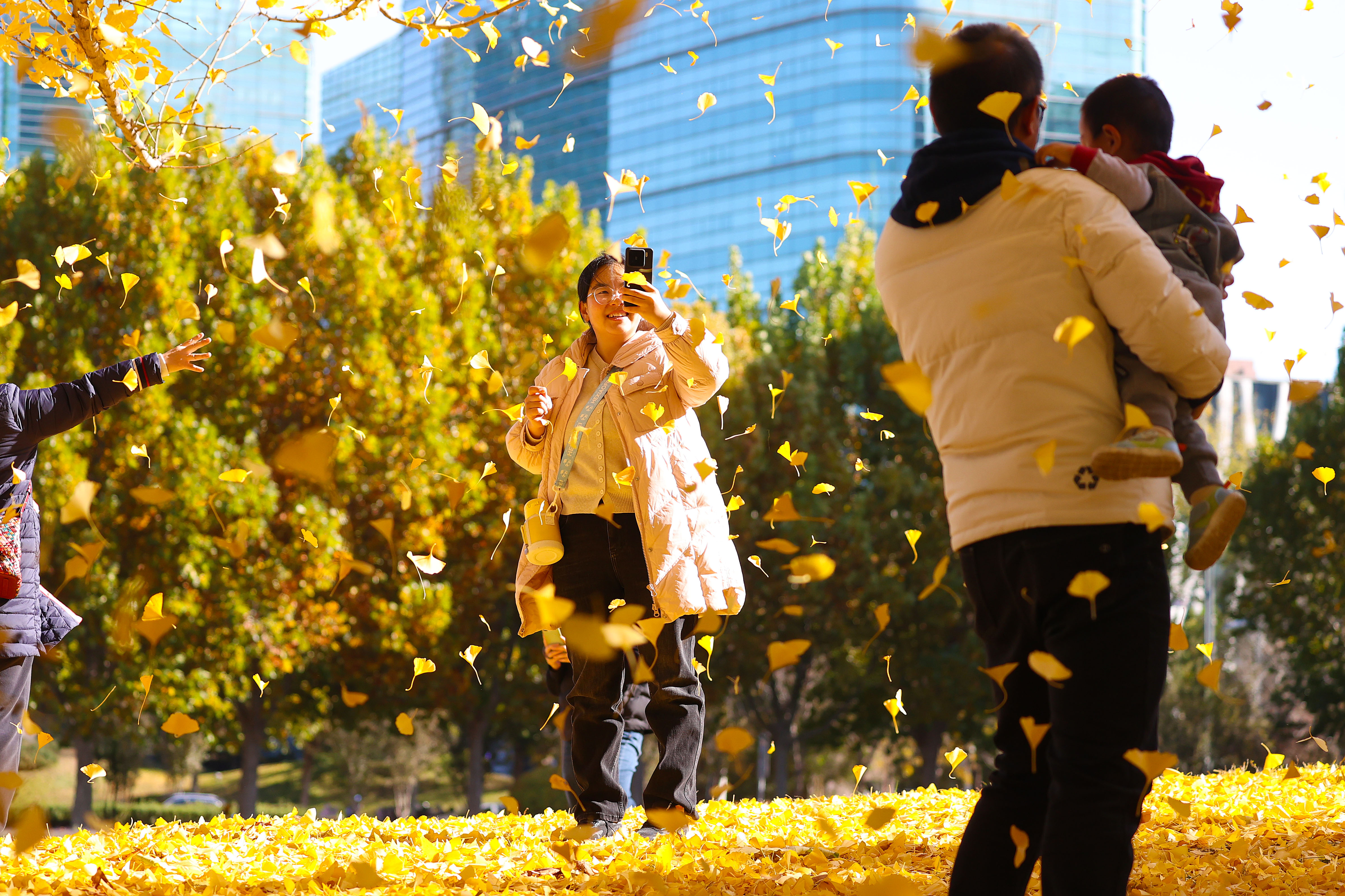 秋冬交替之际,秋风轻拂,阳光为银杏树披上了新装。金色光影在枝头摇曳,一阵风起,满树的银杏叶纷纷落下,人们竞相拍照,捕捉下转瞬即逝的动人光景。趁着秋色未尽,快携家人、好友共赏这幅人间画卷吧!(摄影:吴江 编辑:徐祎)