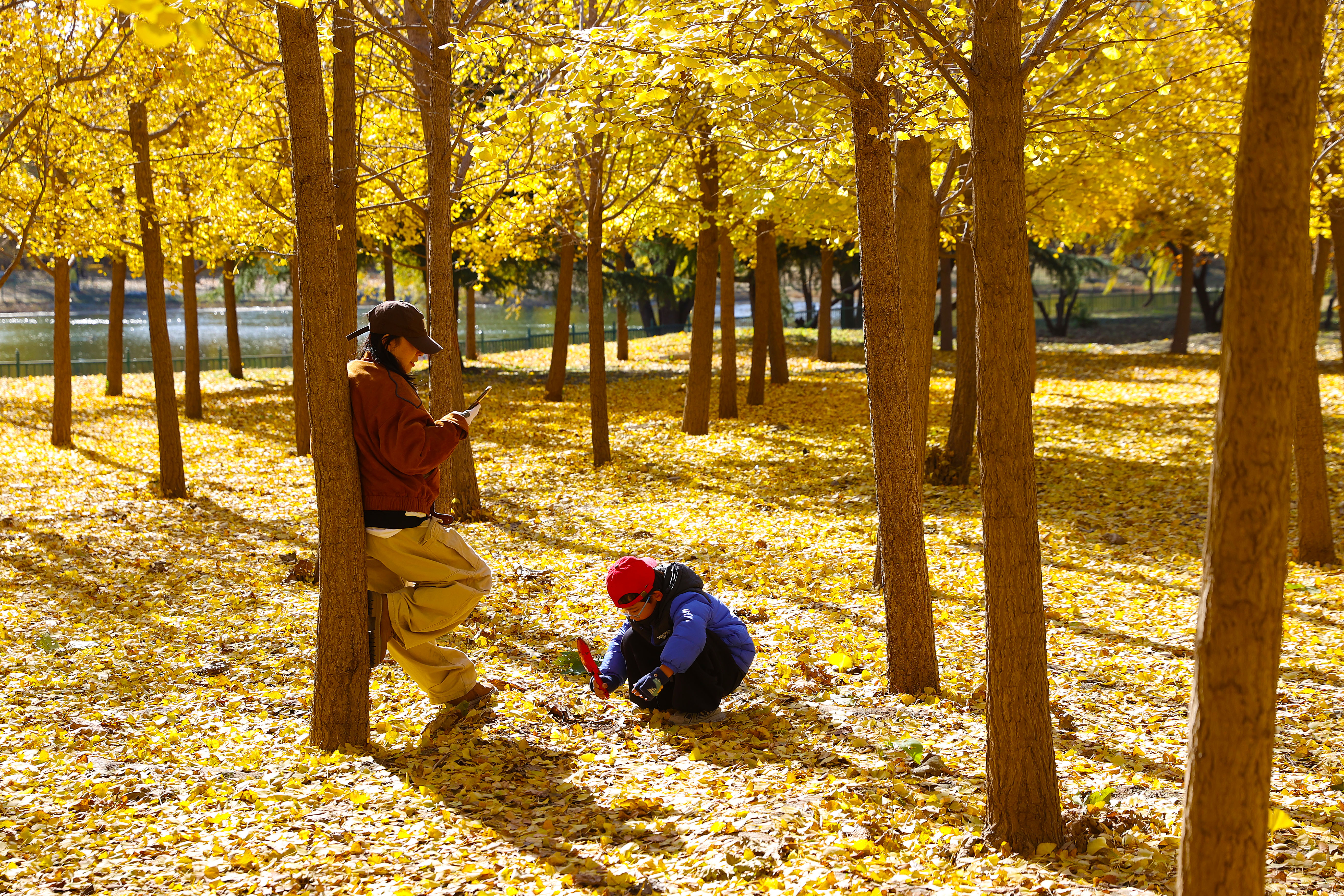 国际企业文化园内的银杏林成为了市民遛娃的好去处。