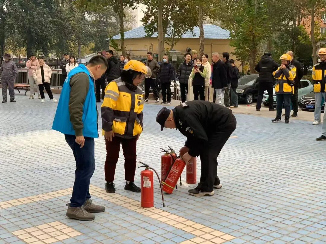 九龙山社区组织外卖骑手学习使用灭火器