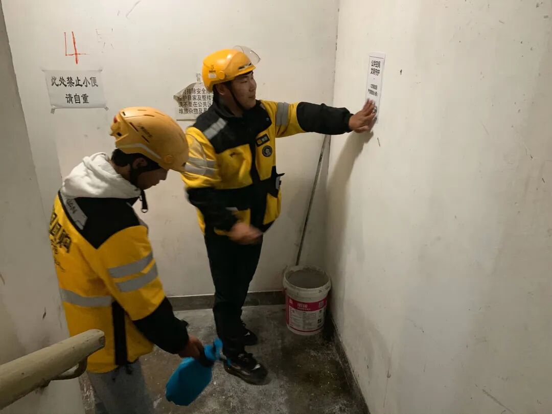九龙山社区组织并鼓励快递员、外卖骑手清理楼道易燃堆物、张贴文明告示