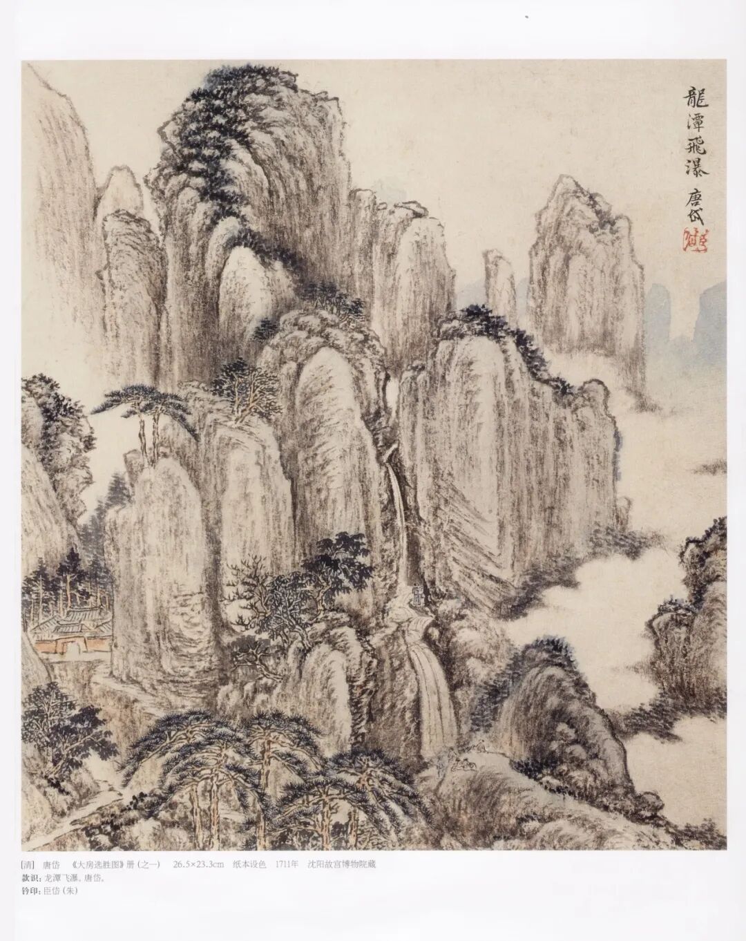 康熙四十九年秋,唐岱游历京西房山,被当地天人合一、纯净天成的和谐景致所吸引。次年,他将在房山所见以写实笔法绘成长卷,并从中精选佳景,作成这十三开册页。画作秉承娄东画派“色中有墨,墨中有色”的风格,既有浅绛、小青绿设色,也有纯墨笔之作。娄东派反对作画草率,强调画家的人品修养,追求“平淡天真”的韵味,这些特点在《大房选胜图》中都得到了充分体现。