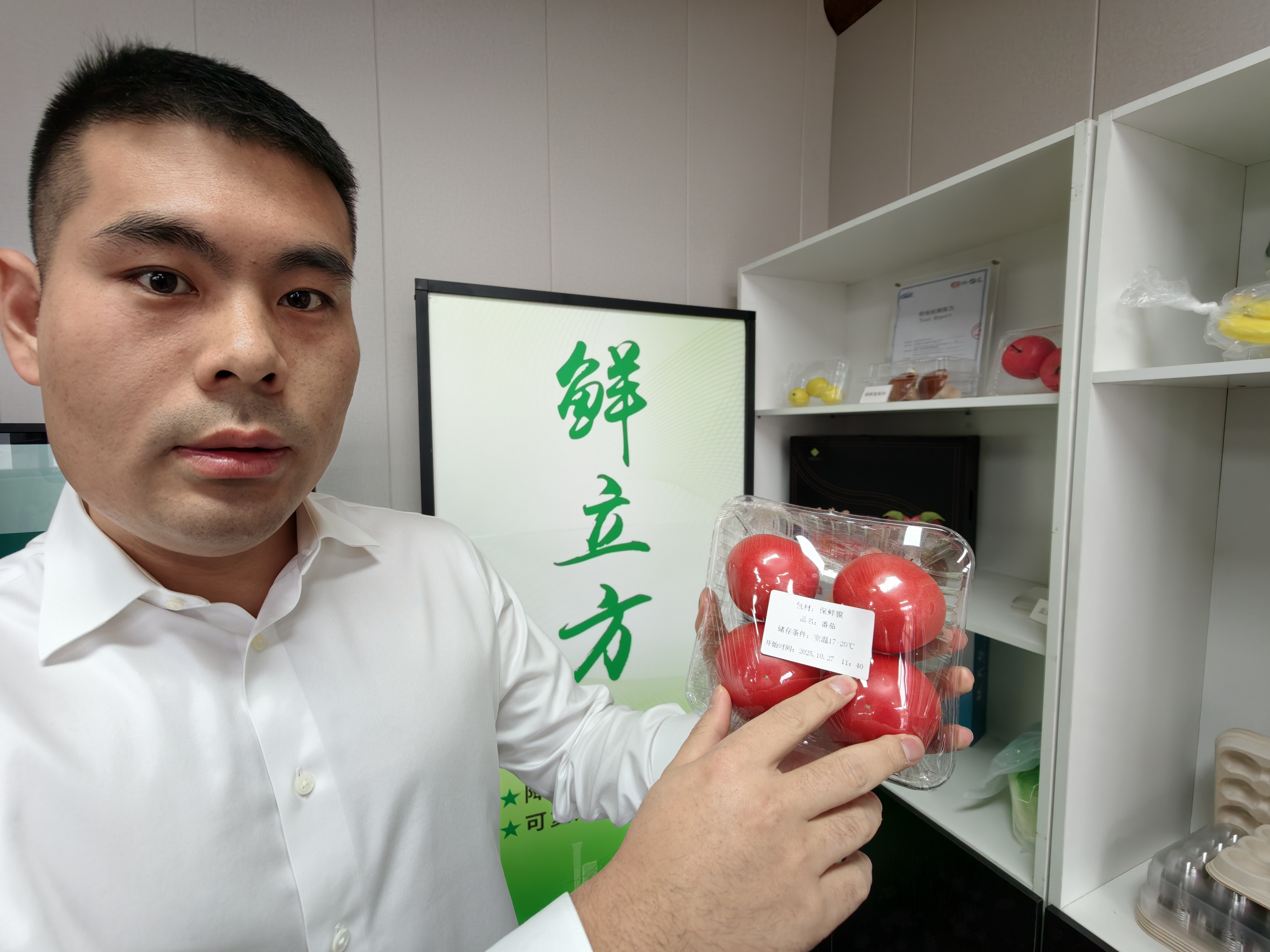 “想象一下,我们的包装袋内壁有无数个‘小口袋’,能主动捕捉并锁住乙烯;同时,它像一块智能海绵,能吸收蔬菜呼吸产生的多余冷凝水,避免‘泡水腐烂’;其材料本身还具有抑菌功能。”鲜立方姜玲人解释道,“这一切的最终目的,是让蔬菜进入一个缓慢的‘休眠’状态。使用成本仅增加几毛的包装,能够系统性解决行业数十年来高损耗的难题。”
