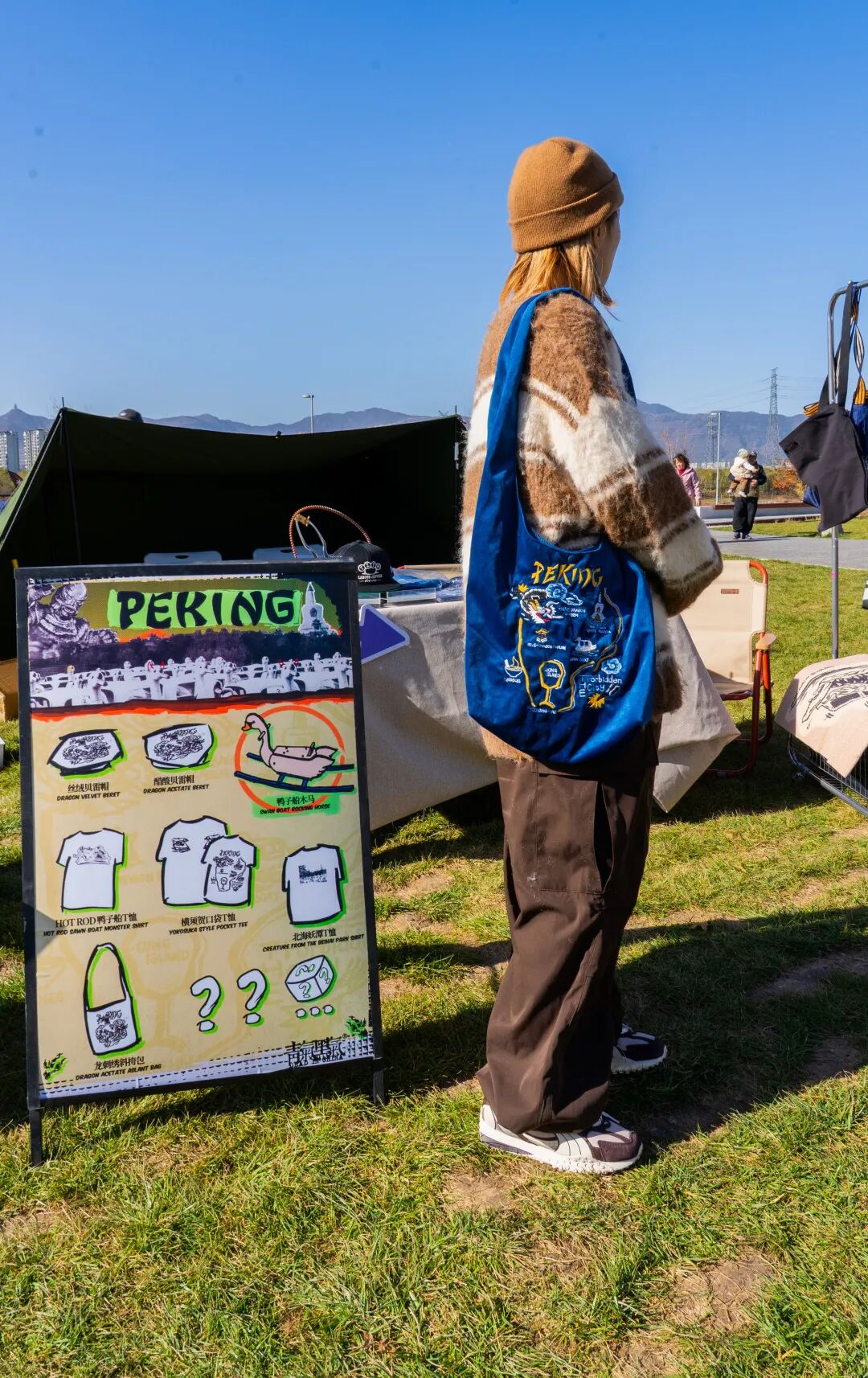 CITY HUB区域的烟火气最是浓郁,摊位前的人群三三两两,或俯身聆听摊主讲述青气黑气里藏着北京记忆的设计单品。