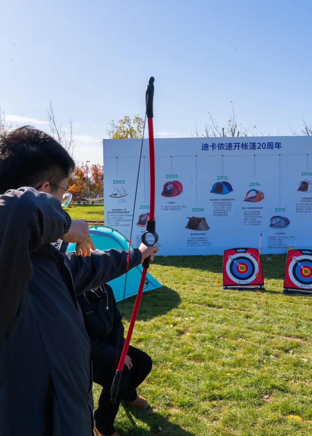 迪卡侬的“2秒搭建”帐篷前围满了好奇的人群,帐篷撑起的瞬间总能引来阵阵惊呼。