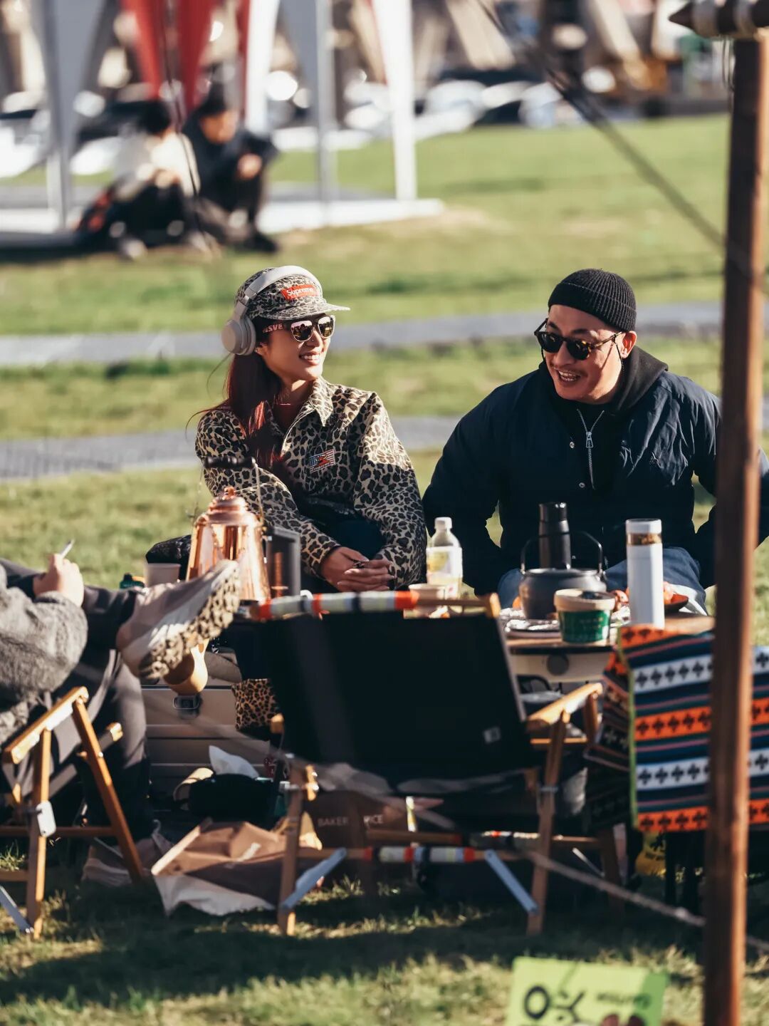 Helinox的环保材质户外家具旁,有人慵懒地靠在椅上晒太阳,有人起身加入运动队伍,动与静的切换间,全是无拘无束的惬意。