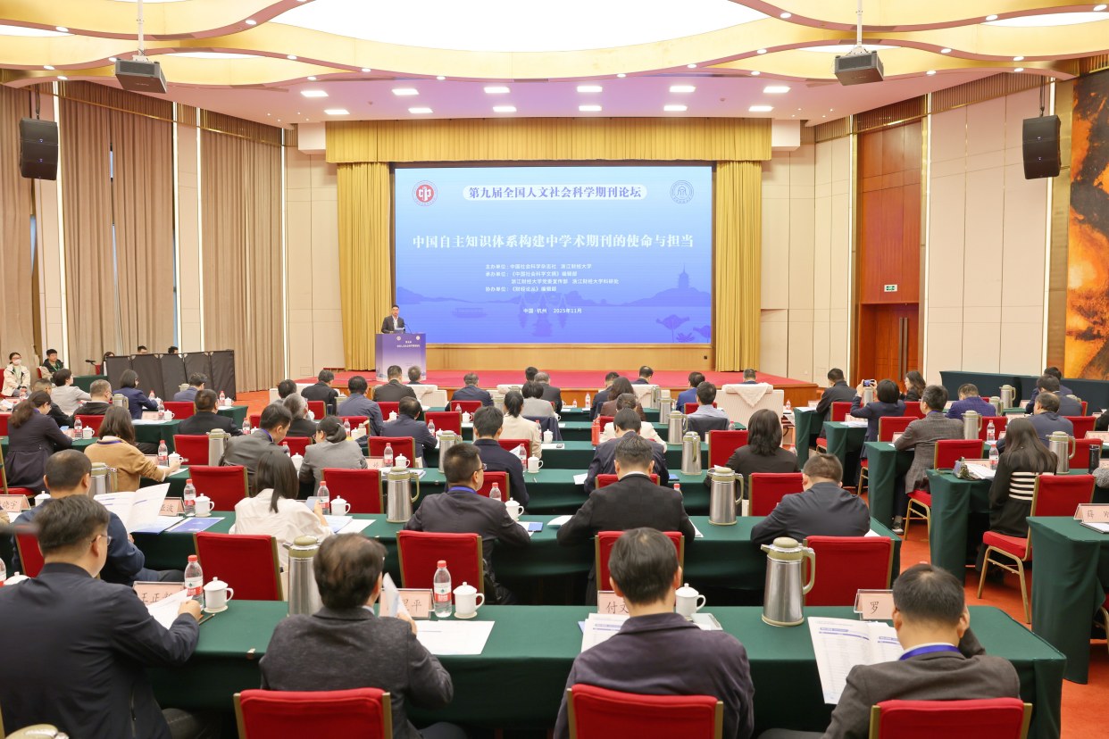 11月8日,由中国社会科学杂志社、浙江财经大学联合主办的第九届全国人文社会科学期刊论坛在杭州举行。本届会议的主题为“中国自主知识体系构建中学术期刊的使命与担当”,会议获得了期刊界和学术界的广泛关注和积极参与,50余家期刊和70多位代表参会研讨。